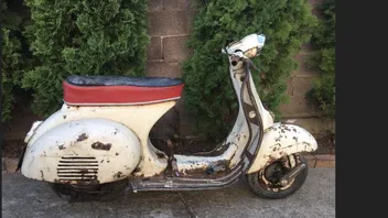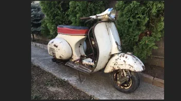 Diese alte Vespa wurde in einer Scheune gefunden.