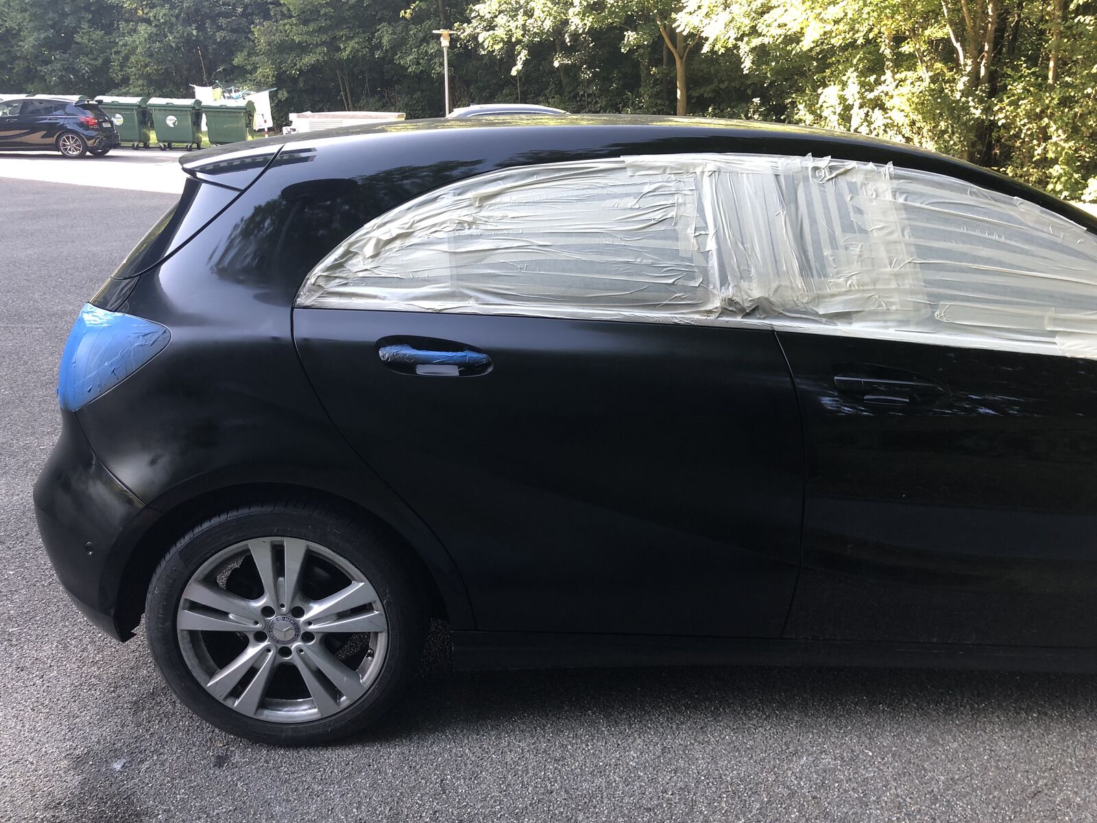 Sieht aus wie Wasserbasis, nicht durchgetrocknet und nur ein dünner Gang Klarlack, wir haben vor einiger Zeit ne Karre mit Nitro abgewaschen, der Vogel hatte versucht die Basis auf Glanz zu lackieren und hatte mittlerweile 10 Gänge davon drauf! Angeblich hatte man ihm nicht gesagt das noch Klarlack drauf muß, egal, davon leben wir...