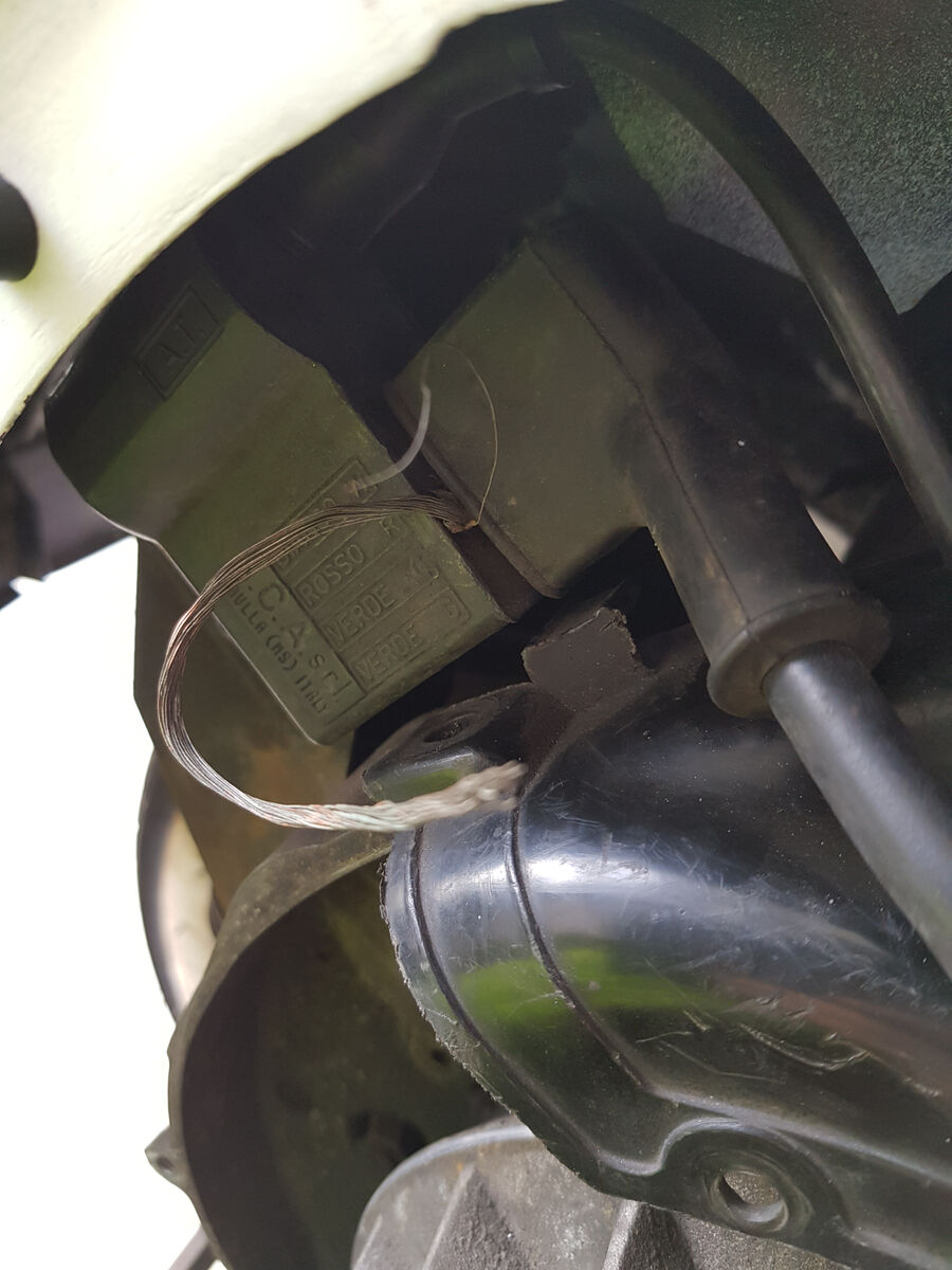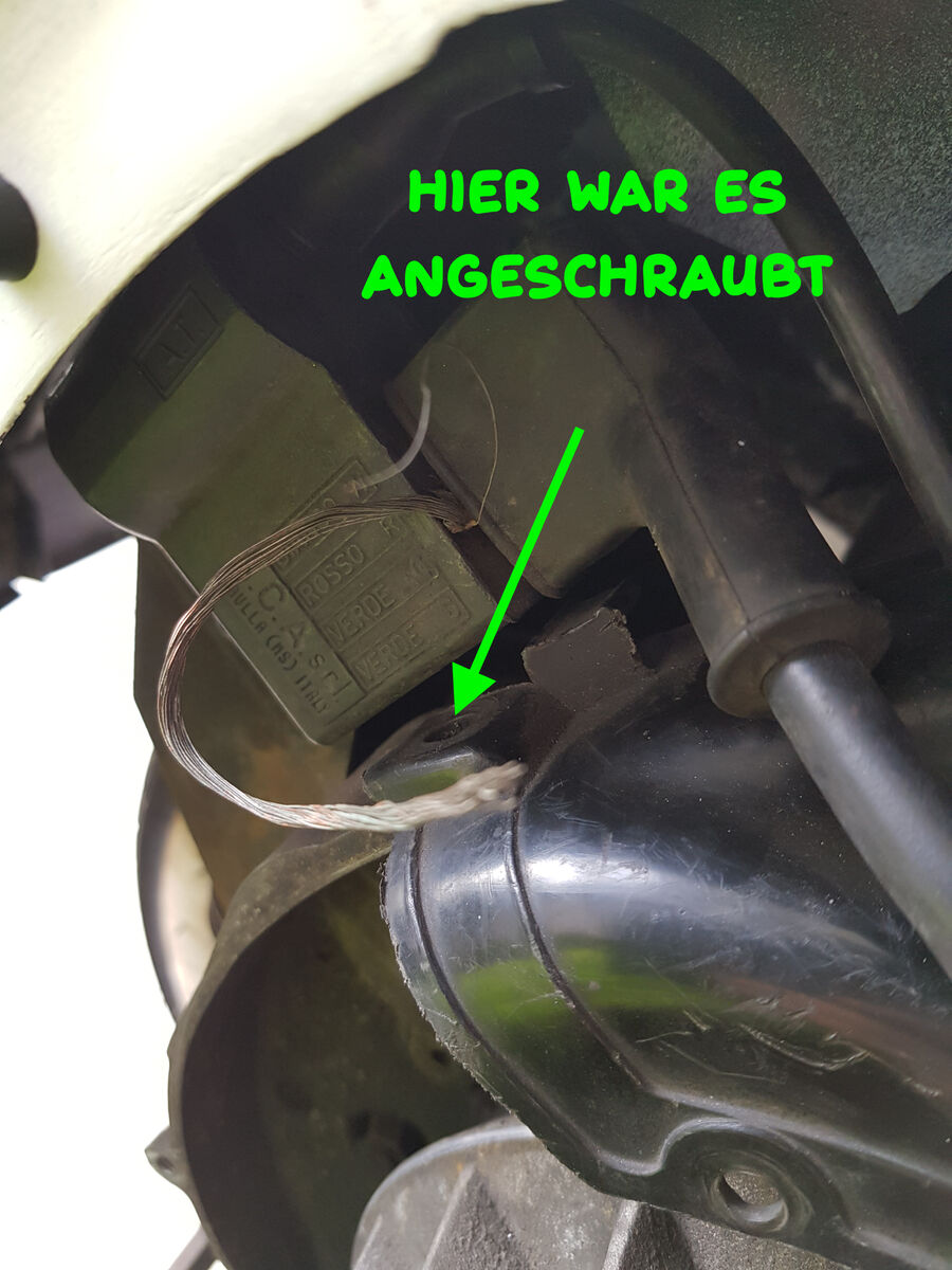 Polradabdeckung fehlten vier (!!!) Schrauben, nun hängt ein Kabel hier rum, was abgescheuert wurde...