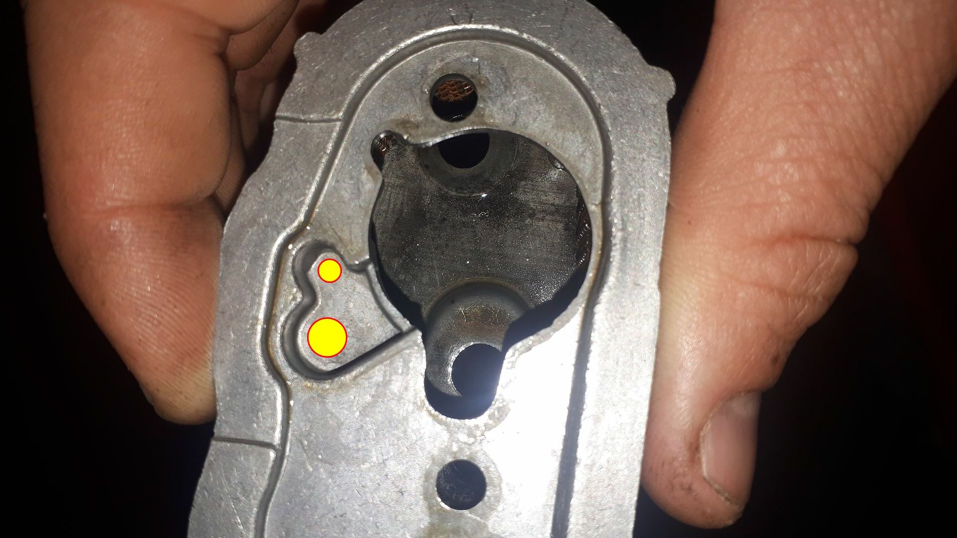 Negativ. Getrenntschmierung. Ich glaube aber der Motor war ursprünglich ein solcher. Ist dafür nicht dieses Loch vorgesehen?