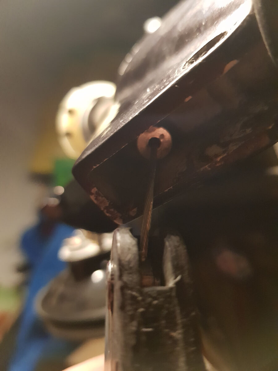 Hier fehlt im Lenkkopf tatsächlich ein Anschlag, in den das silberne Endstück rutschen möchte. Das kommt in das Loch im Kopf, da hinein das Endstück des Zugs. Unabhängig ob es da war oder nicht, da muß eins hin.