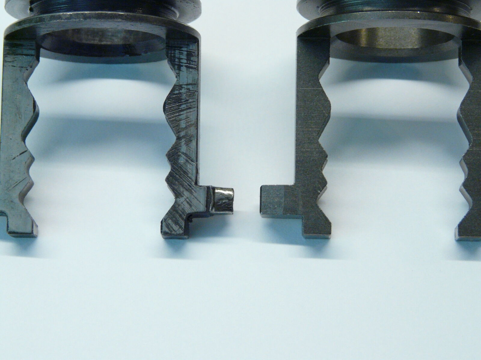 Bei der Notwendigkeit, eine Schaltklaue auszutauschen, spielt in erster Linie mal der Verschleißzustand der Ziehkeil-Enden eine Rolle: