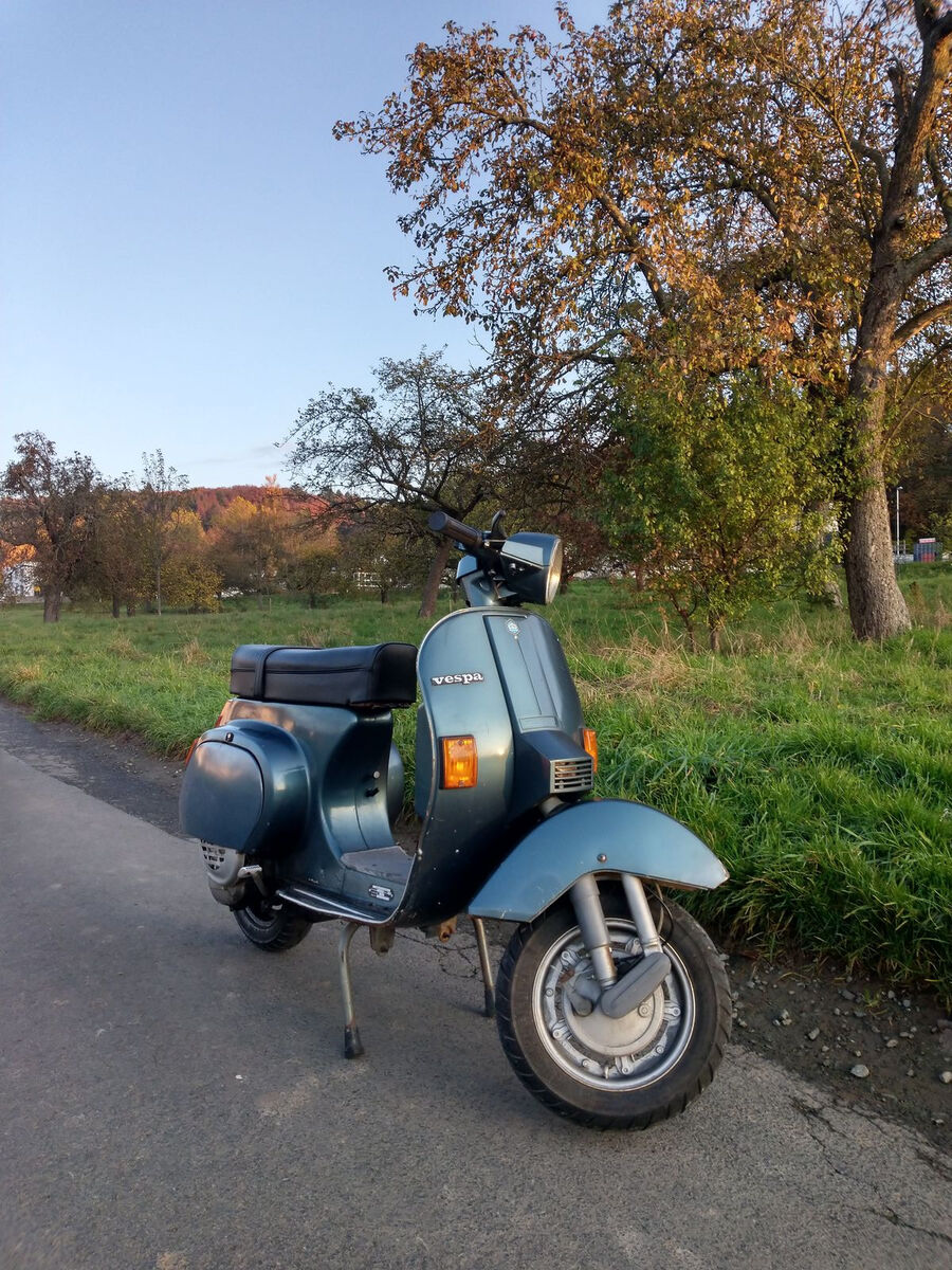 Zur Vespa: Es ist eine PK 50 S aus dem Jahre 1984. Die Kleine habe ich im April 2018 gekauft. Sie läuft ganz gut, hatte jedoch massive Probleme mit der Kupplung, die sehr schwergängig funktionierte. Außerdem lief der Motor nur mit gezogenem Choke. Dieses Problem konnte behoben werden, es lag an der defekten Nebendüse. Die Vespa war ursprünglich hellblau und wurde im Verlauf der Jahre schlecht lackiert.