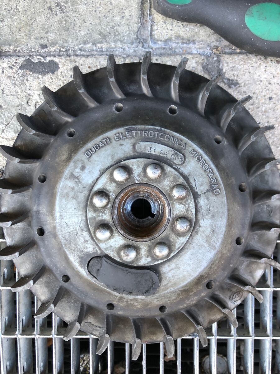 Anders als SCK schriebt ist das kein "originales" Ducati-Polrad, sondern eine indische Kopie , die abgedreht wurde (weil es in unverändertem Zustand zu schwer ist...)