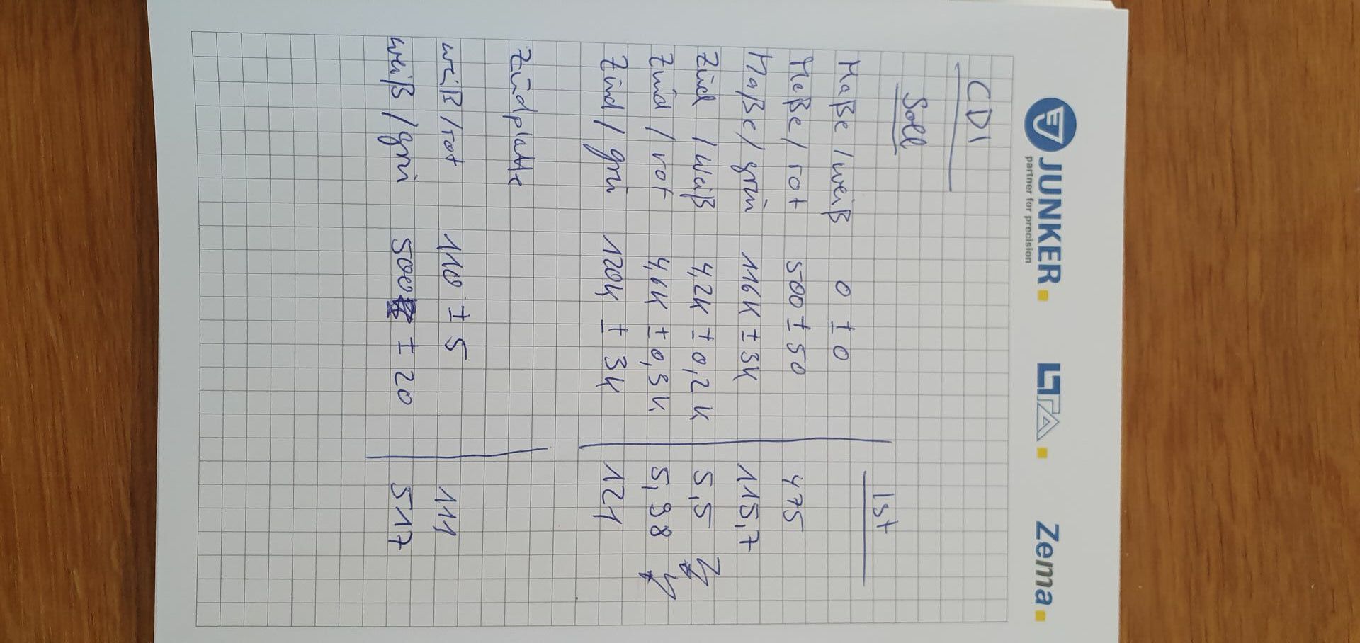 Alles anzeigenich habe zwar gut gemeint in dem ich alle soll und Ist-Widerstände notiert habe und die mit Abweichung mit einem Blitz markiert habe, aber gerne auch kurz: