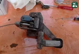Sitzt er direkt unter der Fußbremse (Danke für diesen Hinweis), werde ich die Fußbremse abnehmen und nachsehen.