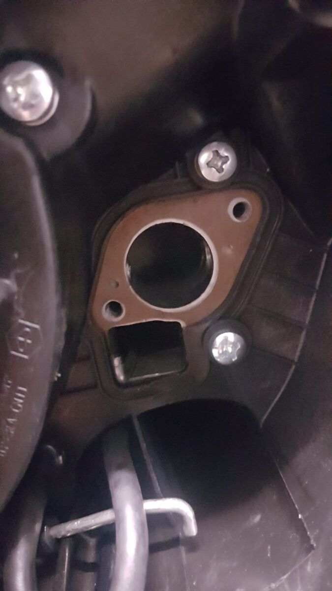 Also am Ansaugstutzen. Die Dichtung muss sie mit den kleinen Bohrungen freigeben. Am Vergaser müssen sie auch frei sein.