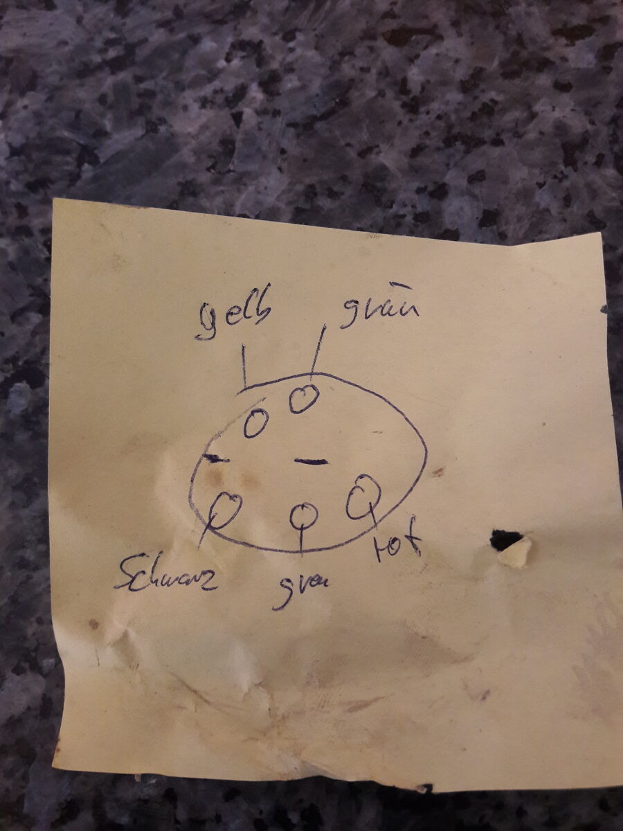 • Also, Steckerbelegung passt, allerdings hat das Grüne Kabel Kontakt zu masse, also wenn ich den Rundstecker abziehe und grün gegen masse messe piept das Multimeter.