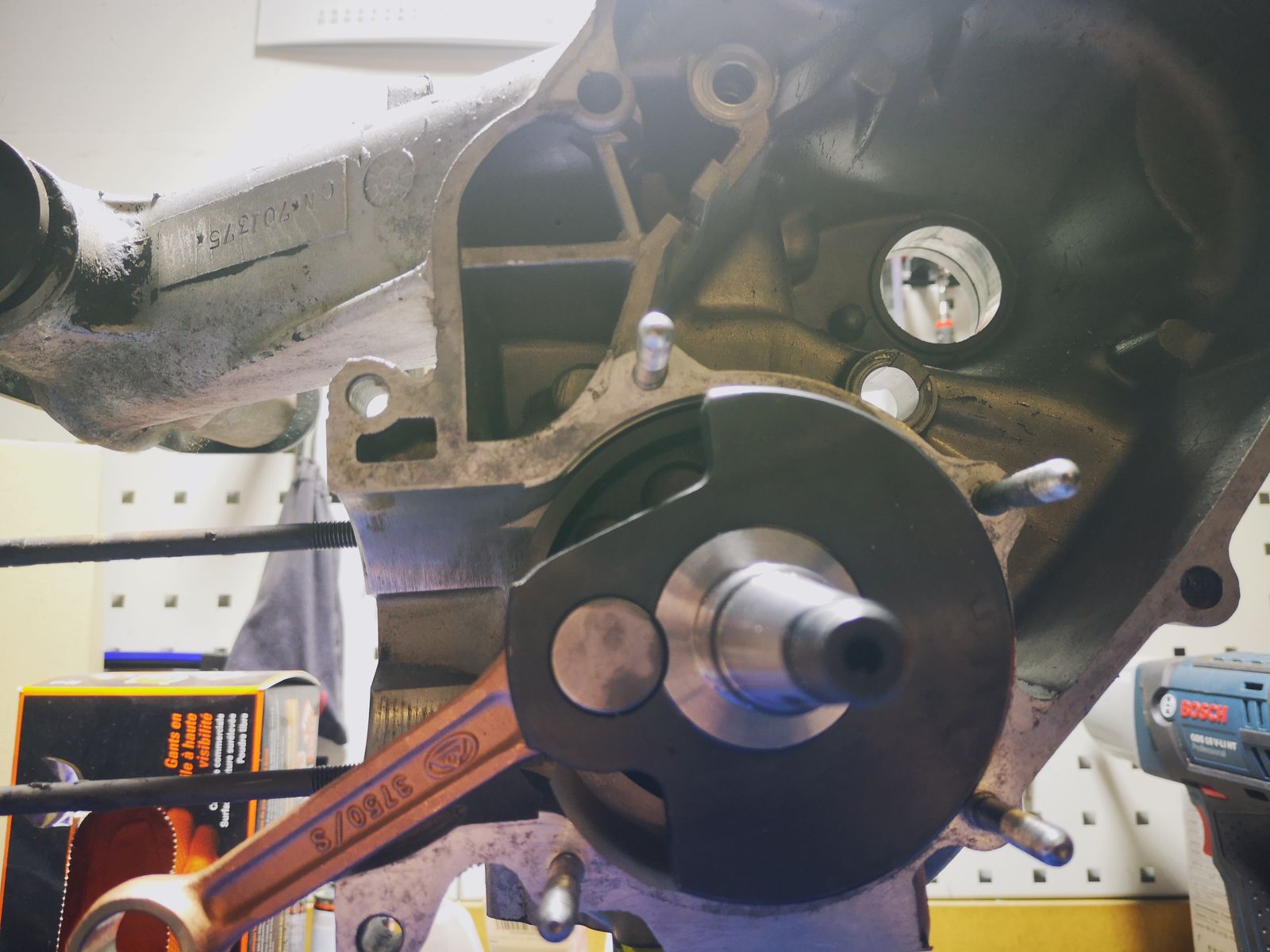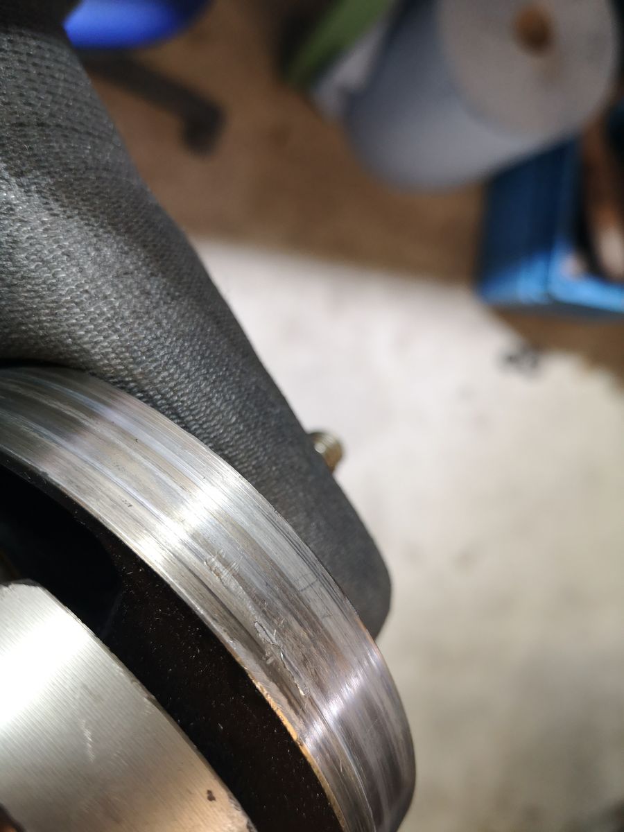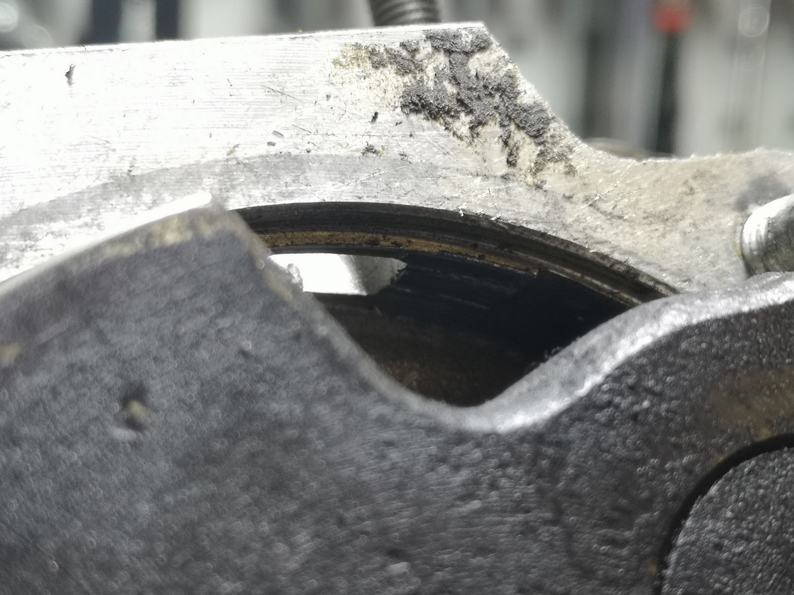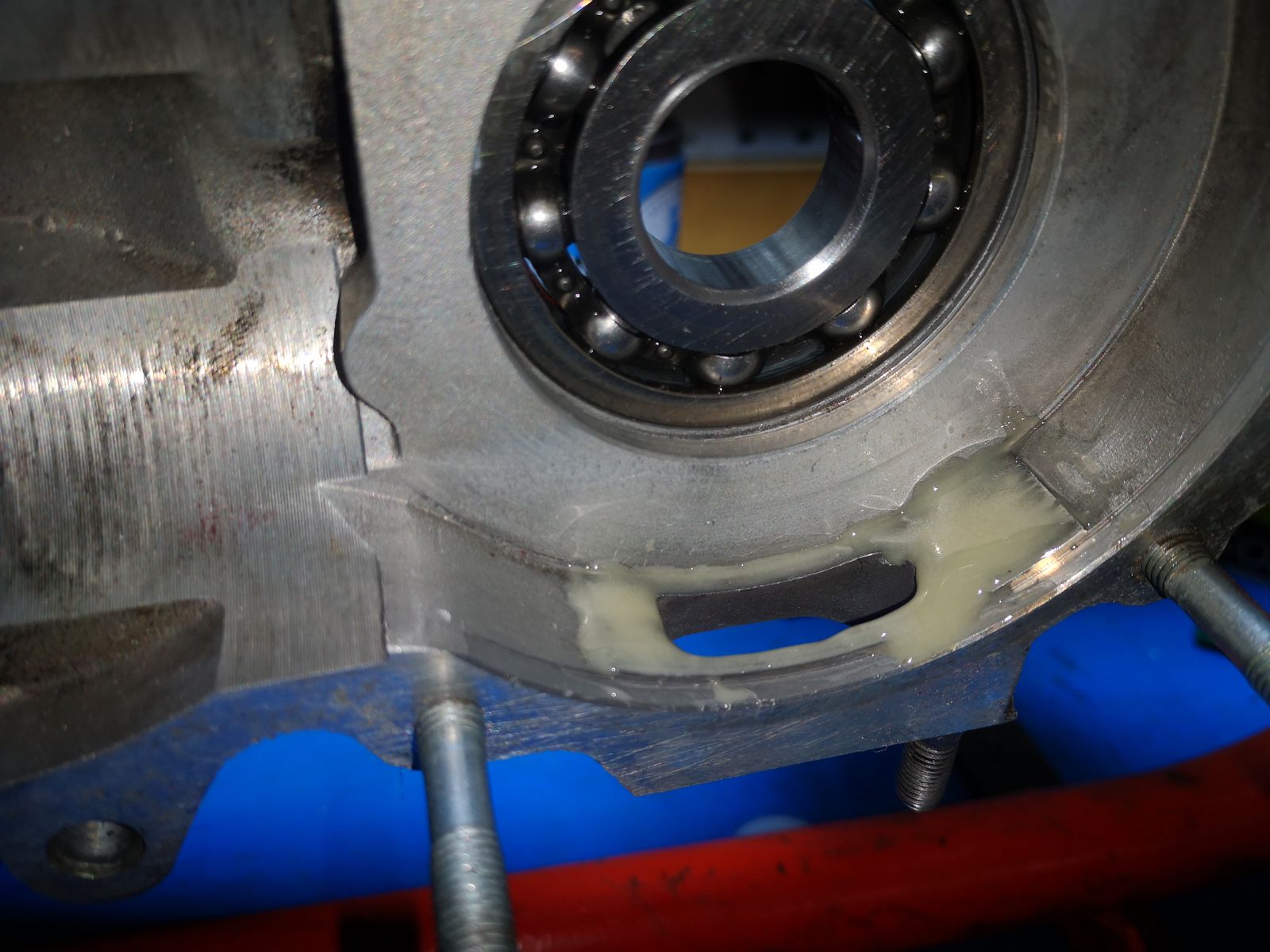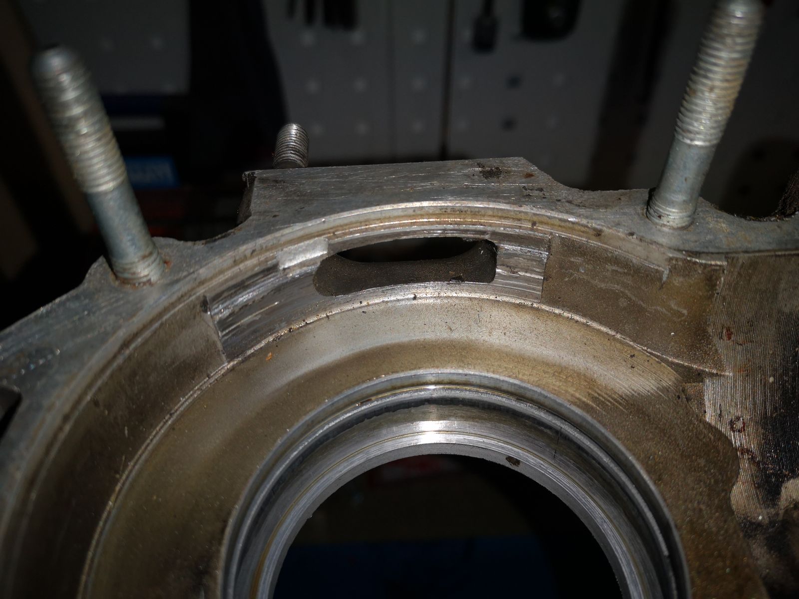 hier sieht man schön die defekte Wange der Kurbelwelle: