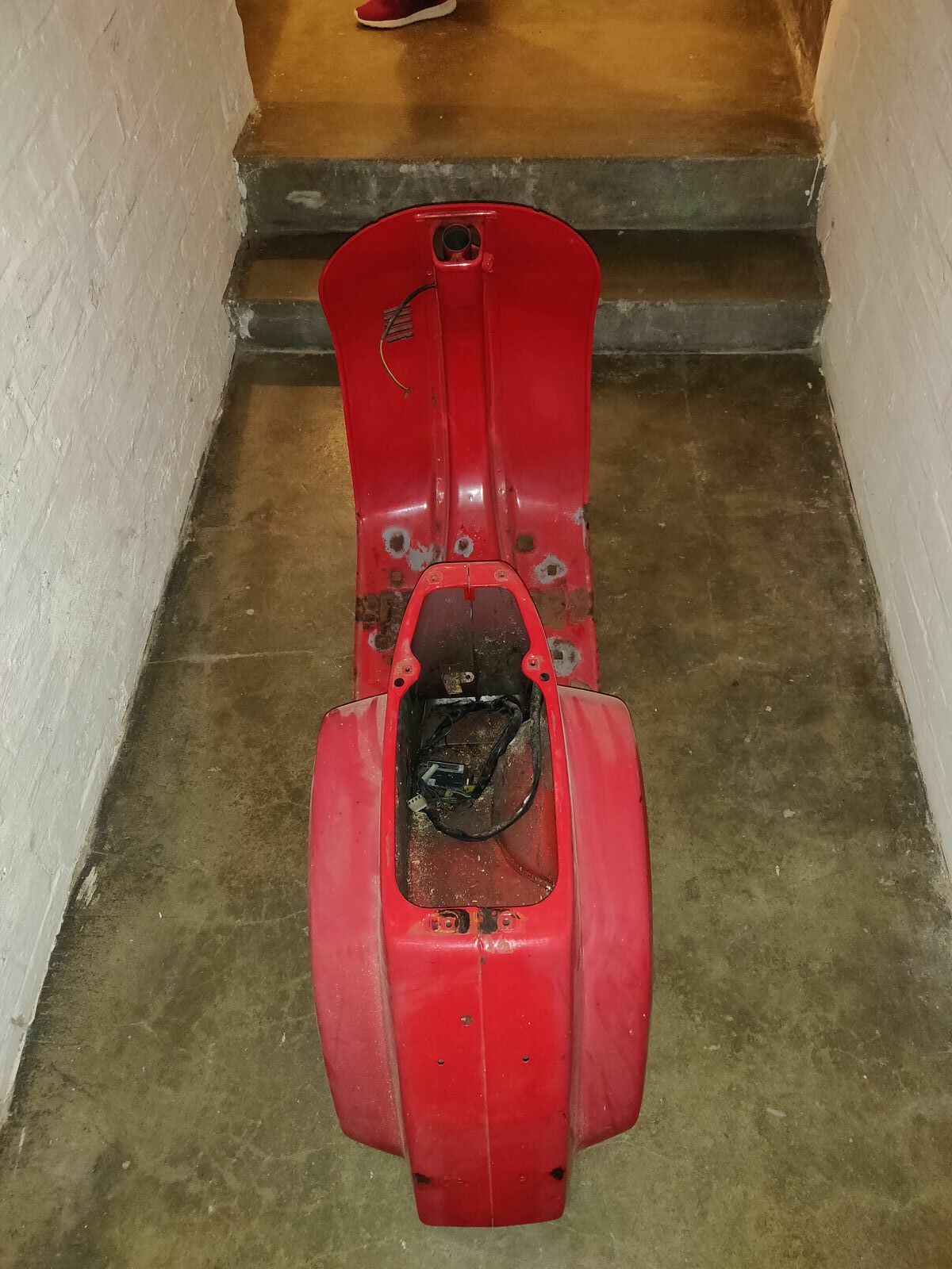 Kommt leider ohne Seriennummer und Papiere, ich habe ihn mal für sowas hier gekauft: https://www.thisiscolossal.com/2016/03/vespa-scooter-chairs/ ...und dann natürlich im Keller solange stehen lassen, bis ich das Interesse verloren habe.