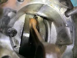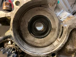 4) Am Einlass von dem Kurbelwellengehäuse (wo der ASS dran ist) waren Metallsplitter. Die Kurbelwelle hat sich hier nicht "weiter" drehen lassen und eckte hier an.