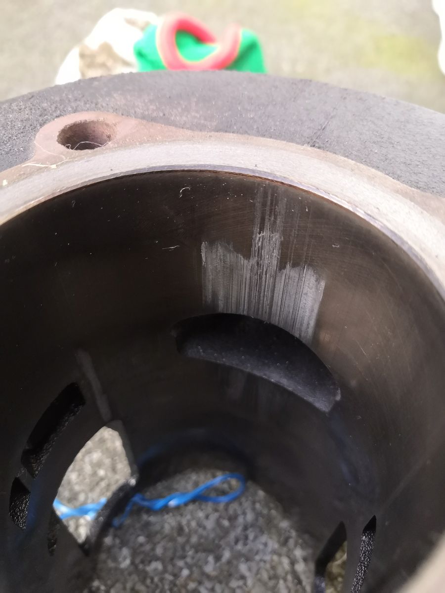 Nachdem ich die Vespa wieder durch den TÜV bekommen habe, bekomme ich nach ca. 20 km einen Kolbenfresser. Das war die erste Tour in der ich kein zusätzliches Öl im Tank hatte nach einem Zylinder-Wechsel, deshalb meine erste Theorie: Kolbenfresser, weil die Getrenntschmierung nicht funktioniert. Der Kolben sieht jedoch folgendermaßen aus