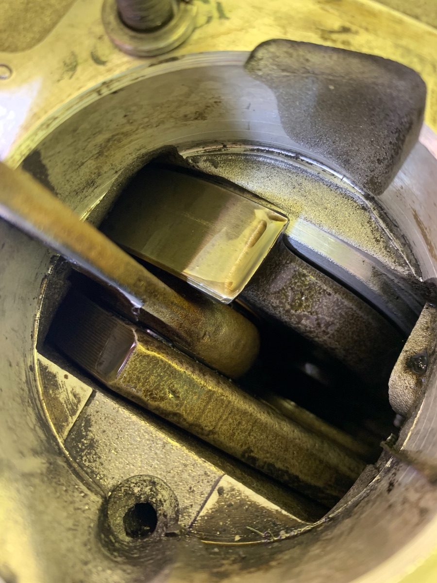 Kapitaler Motorschaden - mit Glück ist der Drehschieber noch gut, Auseinander muss der Motor auf jeden Fall.