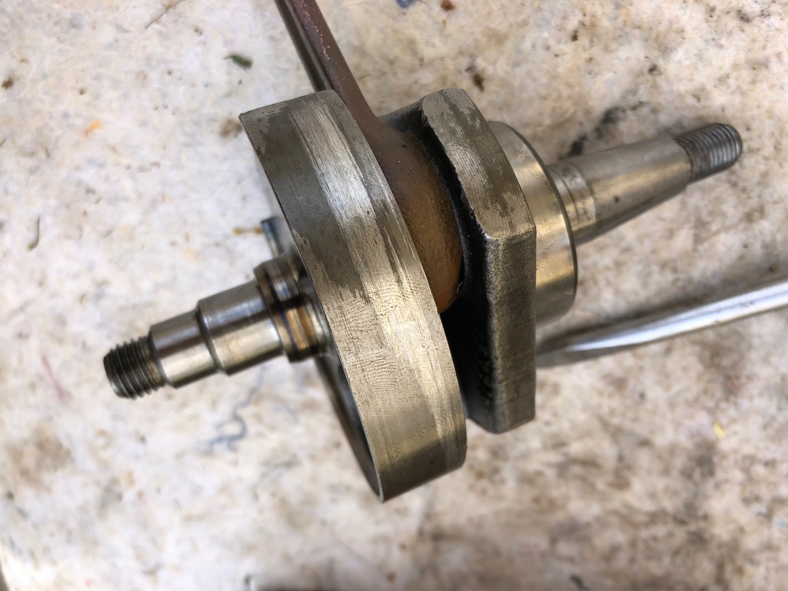 Die Kurbelwelle hat auch was abbekommen, die würde ich tauschen, wenn es notwendig ist.
