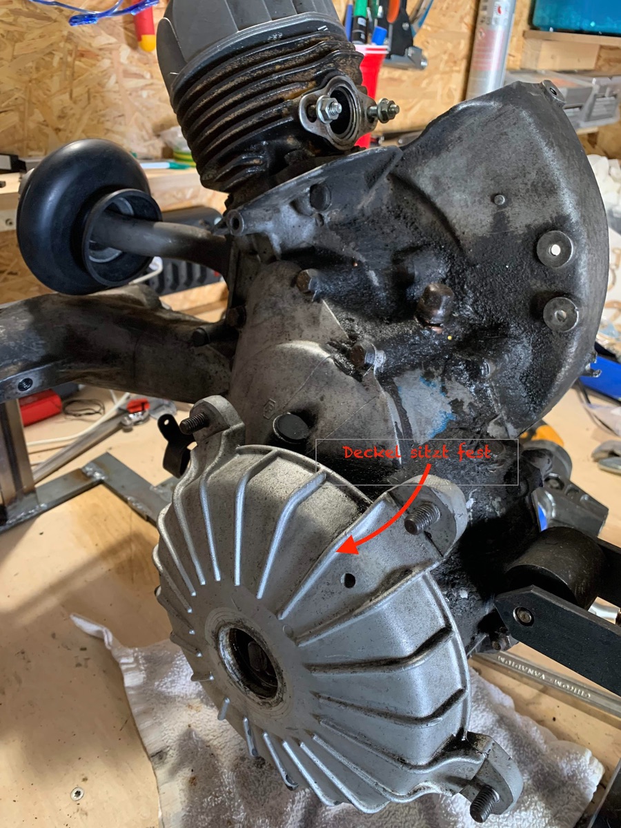 • Bei Schlägen auf die Welle wäre ich vorsichtig, solange der Motor noch geschlossen ist. Du zerschlägst dir u.U. die Gehäusehälte lichtmaschinenseitig ( Hadelhülsenlagersitz ).