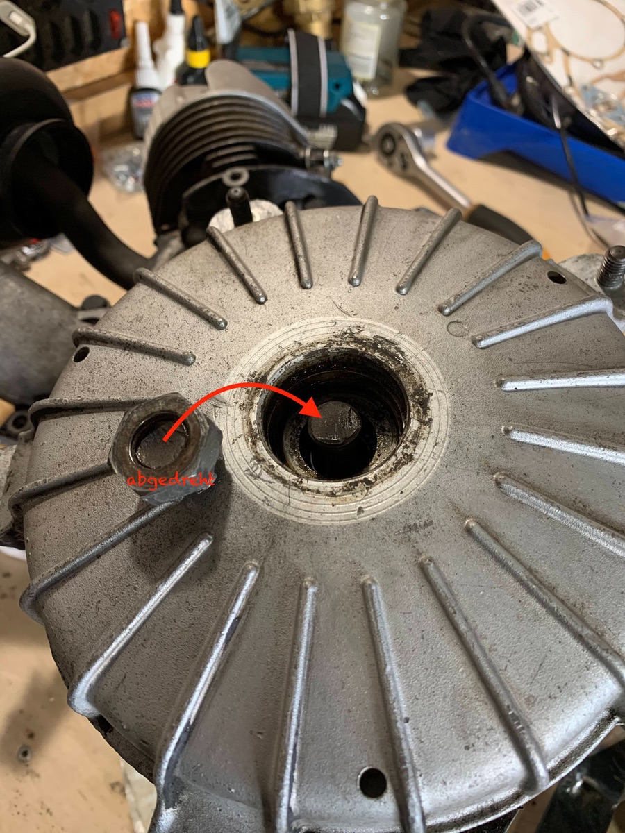 • Aber der Wellenstumpf ist schon weg. Von daher wird das ansetzen des abziehers etwas sportlich. Ggf das abgescherte Teil rein legen