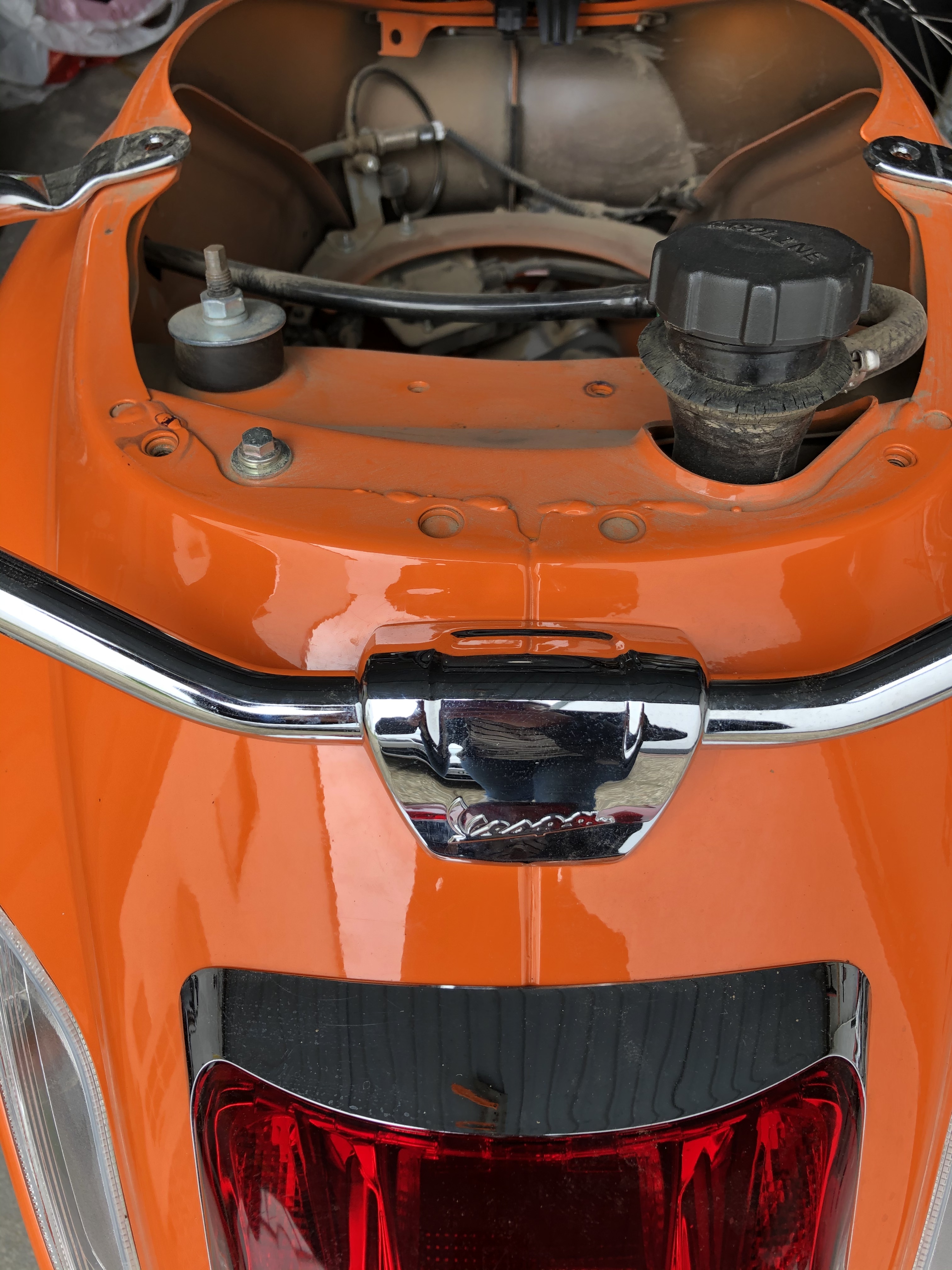 Diesen bekomme ich nicht montiert. Habe soweit alle Schrauben entfernt, aber das Vespa Emblem geht nicht ab (siehe Bild). Wenn mir jemand einen Tipp geben kann, wie ich alles abbekomme, wäre ich sehr dankbar!!