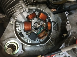Problem war das ein Lötkontakt der Zündungsspule nicht richtig verlötet war und bei der kalten Lötstelle kein Strom mehr fließen konnte.
