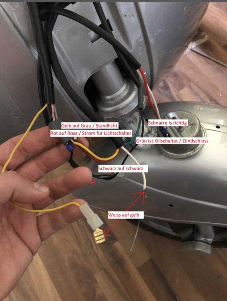 Mein Kabelbaum sollte ein Doppelrotes und ein weißes für die Schnarre haben, hat er aber nicht. Rot und weiß einfach! Wenn ich die Schnarre mit rot und weiß verbinde, das gelbe vom lichtschalter( hupenknopf) dazu schließe, habe ich ein dauerschnarren! Wie schließe ich die Schnarre nun richtig mit dem Lichtschalter an? Ich kenn mich elektrisch überhaupt nicht aus. Habe jetzt schon einiges probiert, aber leider.