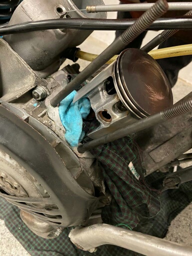 ich hahe bei meiner P 200 E Bj. 82 einen gebrauchten Malossi 210 verbaut. Auf dem Kolben war leider kein Pfeil, daher habe ich die Kolbenfenster zum Einlass hin montiert. Die Vespa fährt jetzt zwar, stottert aber und qualmt etwas. Bevor ich den Zylinder zerstöre will ich sicher sein, ob der Kolben auch richtig drin ist. Könnt Ihr mir weiterhelfen? Bin echt etwas verzweifelt....
