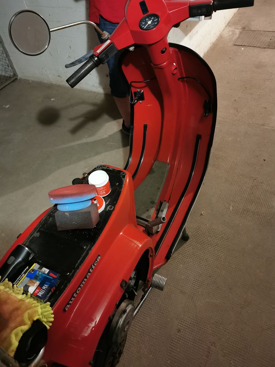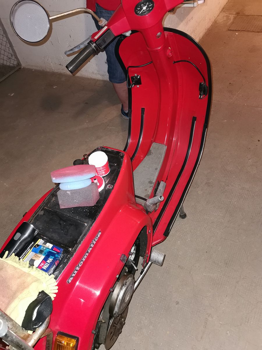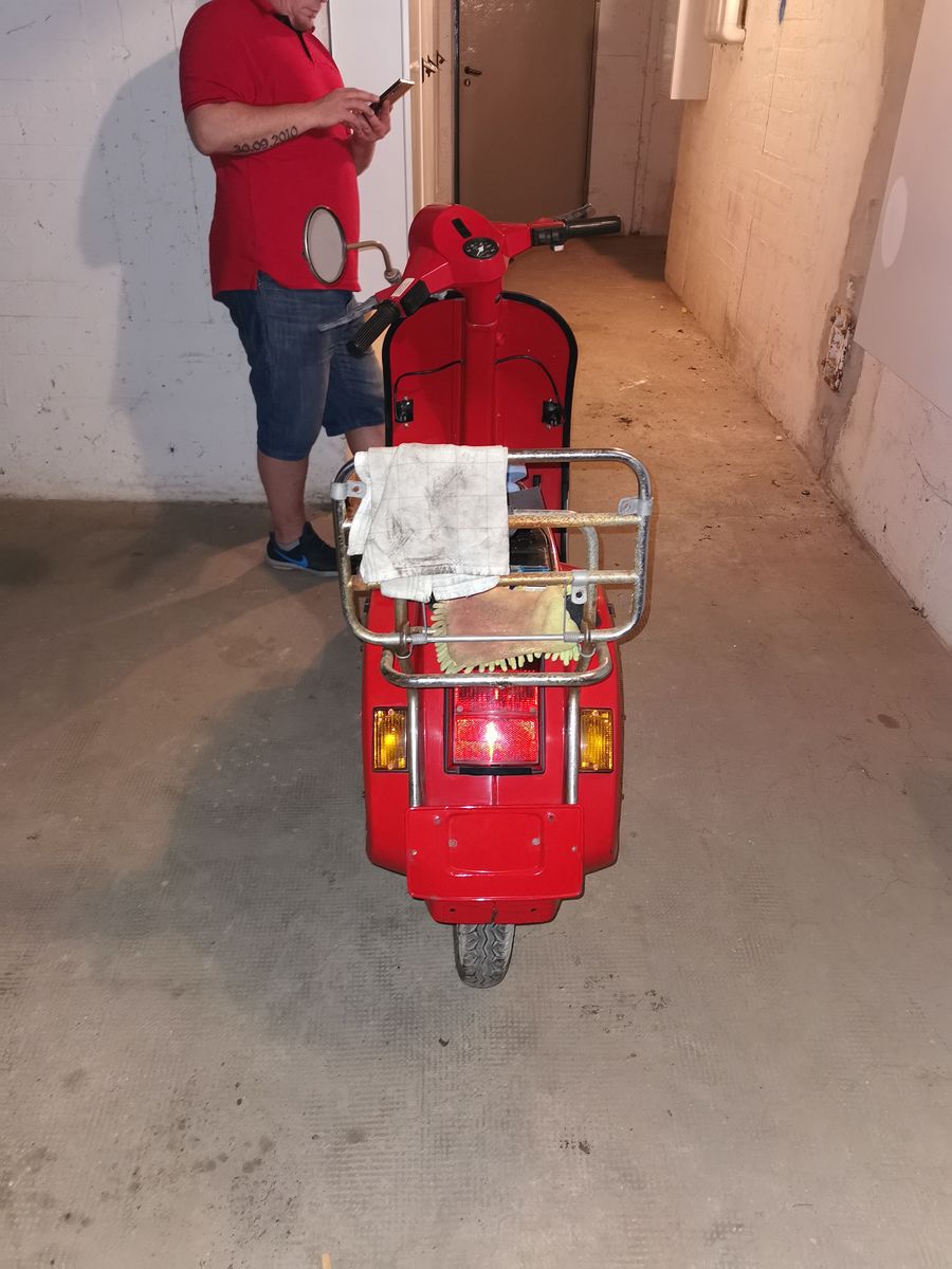 Und da ich keine Führerschein habe, habe ich ihn in meinem Keller geparkt. Er Stand unter einem Fahrrad Abstellplatz der überdacht war. Einige Mieter sagten das der Roller da schon fast 20 Jahre steht. wenn das Stimmt stand er 30 Jahre im Trocknen.