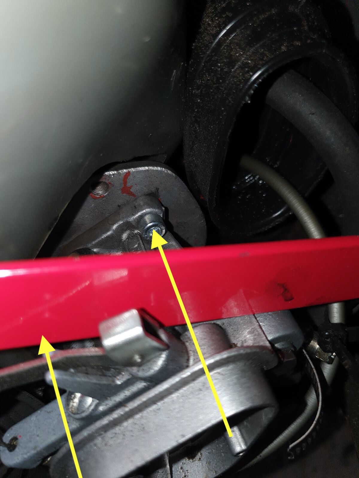 Der rote Stahlstreifen hat den Sinn das der gaszug direkt den vergaser bewegt da der vorbesitzer den öltank plus gasgestänge demontiert hat und alles weggeschmissen hat. Der rote Blechstreifen spannt also den gasszug.