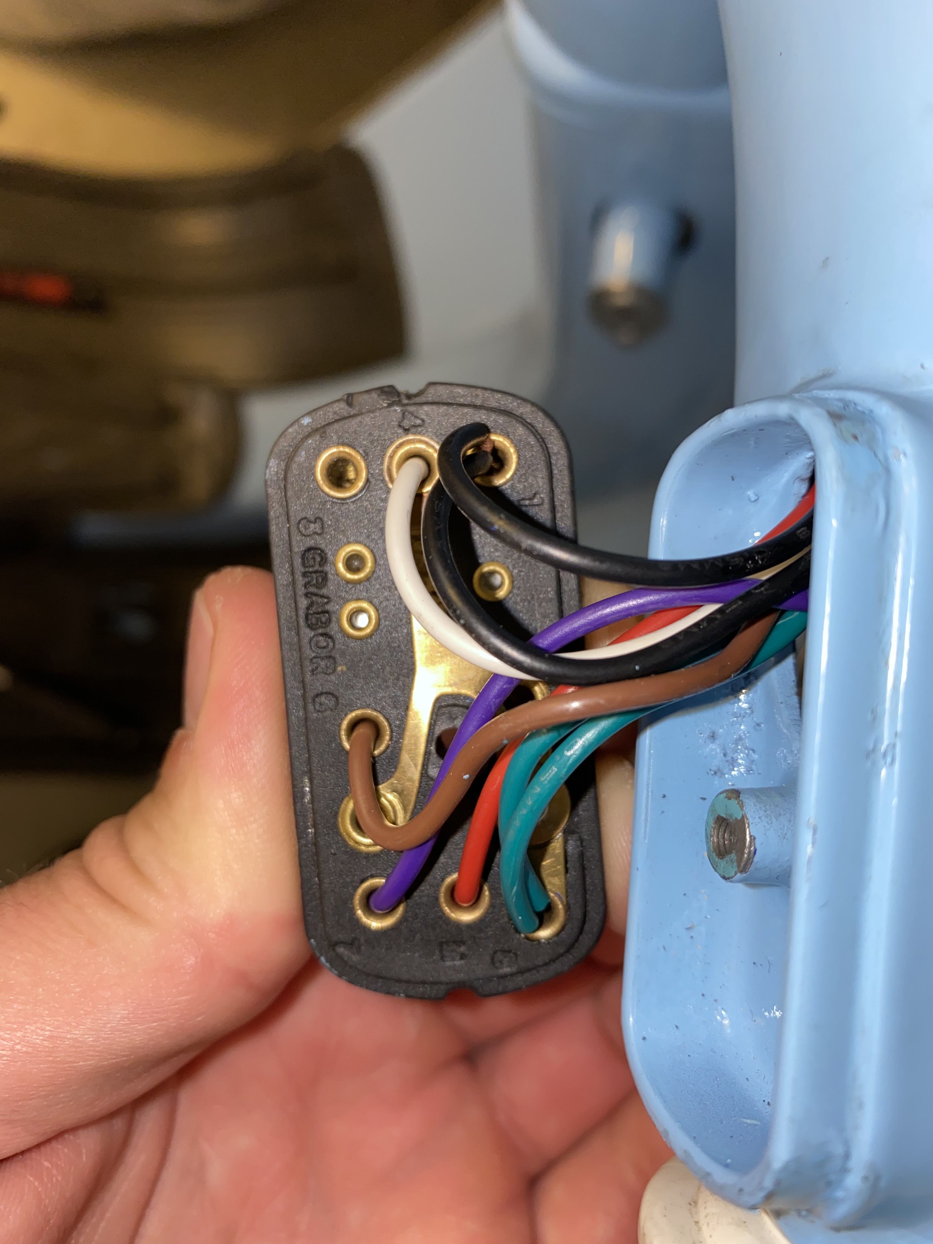 • Welche Kabel gehen denn zum Lichtschalter? Kann mir vorstellen dass die zwei grauen zur Schnarre gehen und das zweite Schwarze bereits am Lichtschalter angeschlossen ist. Dann einfach Schwarz zu Masse Licht vorne, braun und lila fĂŒr Fern und Abblendlicht und die beiden grauen zur Schnarre