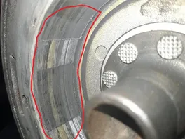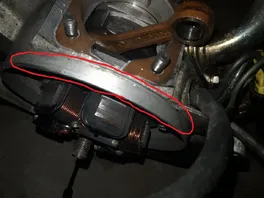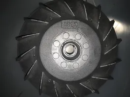Mir fiel auf, dass das Polrad/Lüfterrad relativ schwergängig ist, und beim drehen irgendwo schleift. Also habe ich es demontiert und sah, dass es am Gehäuse ankommt und Schleifspuren hinterlassen hat (siehe Fotos, kann mich nicht besser ausdrücken).