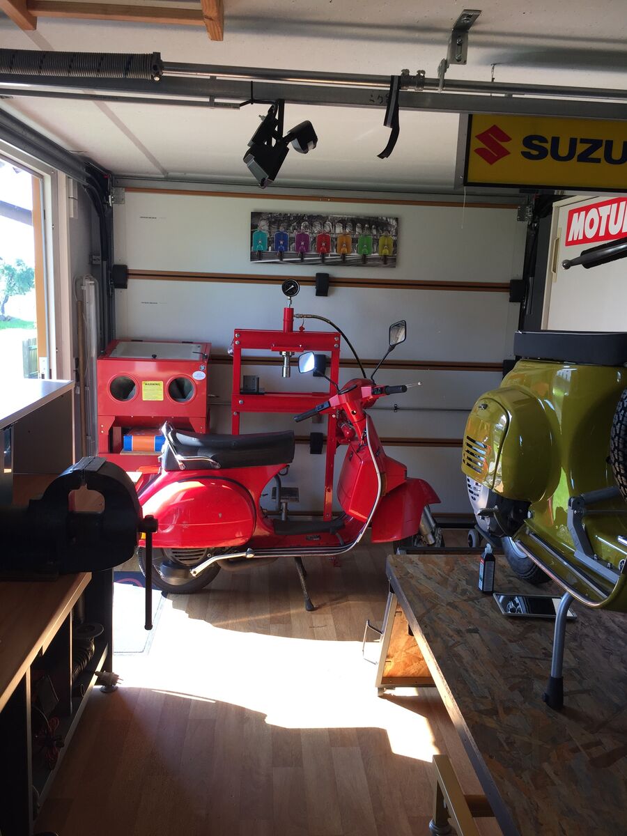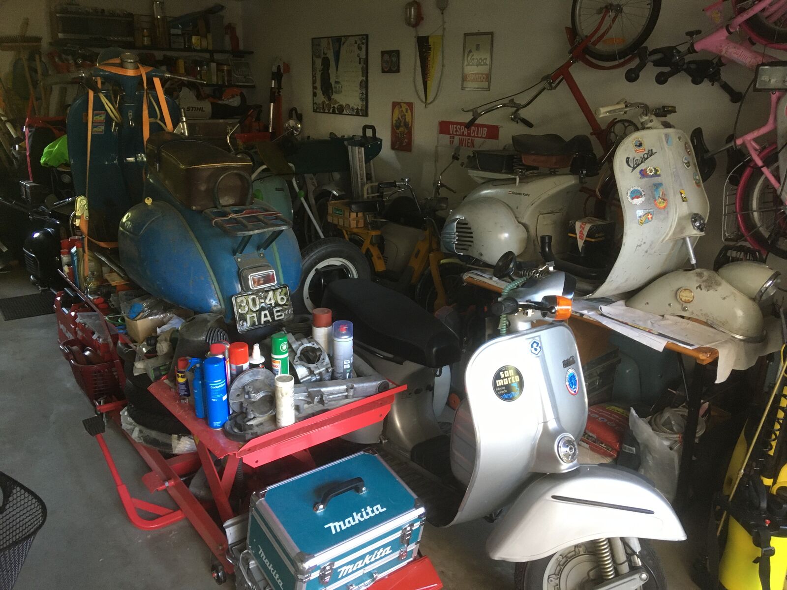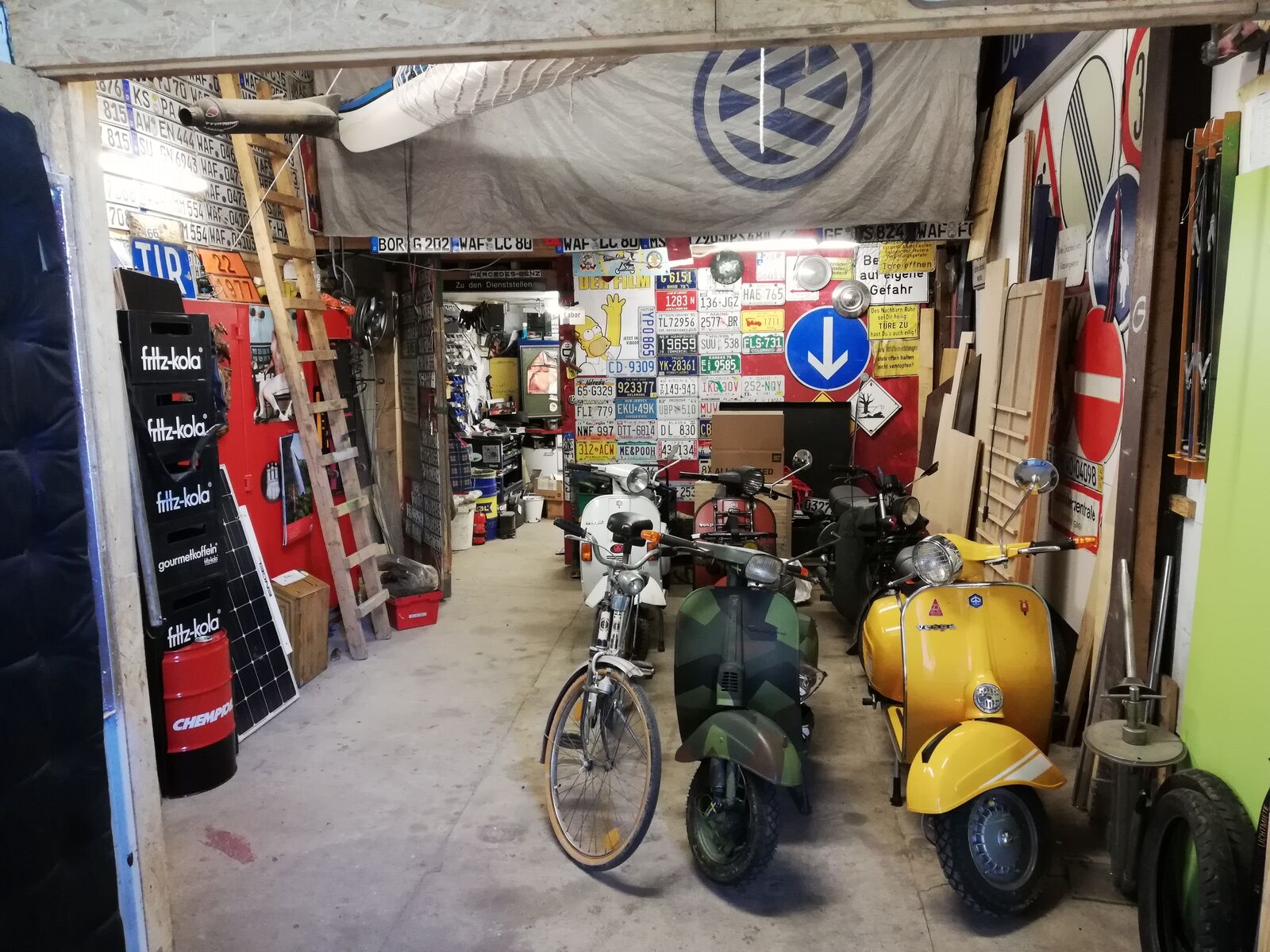 Und weil unten der Platz nicht mehr reicht wurde die PX,PK,Schwalbe nach oben auf den Dachboden gestellt mit nen Gabelstapler