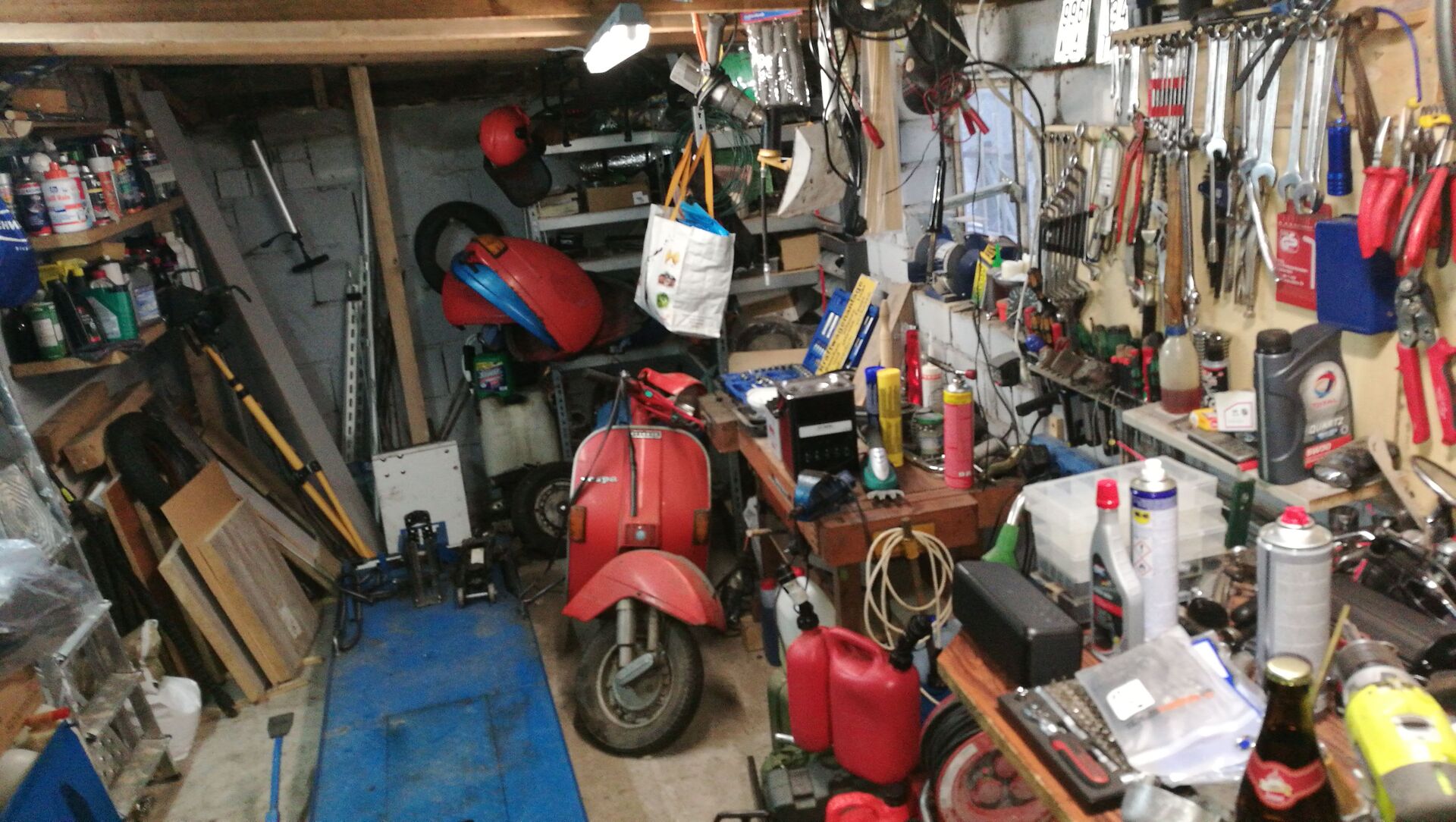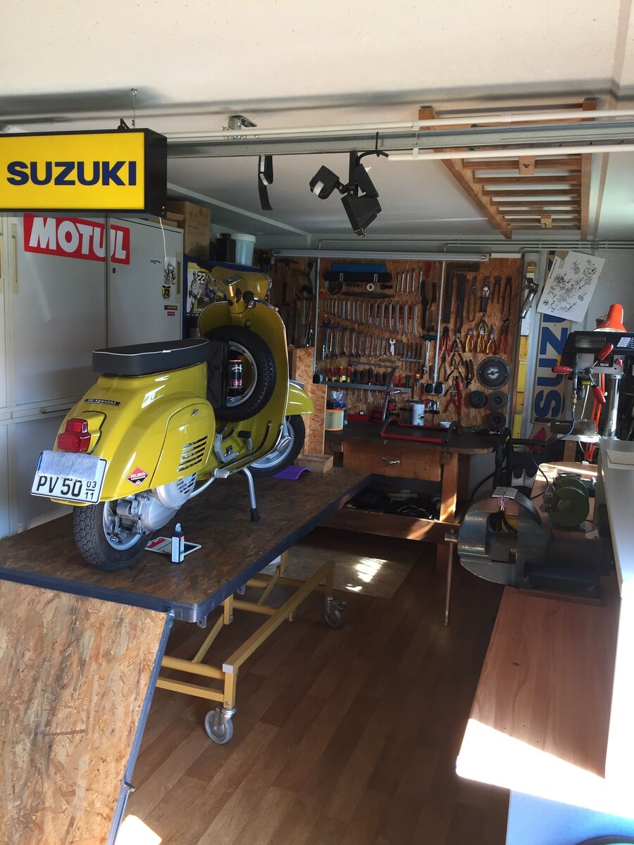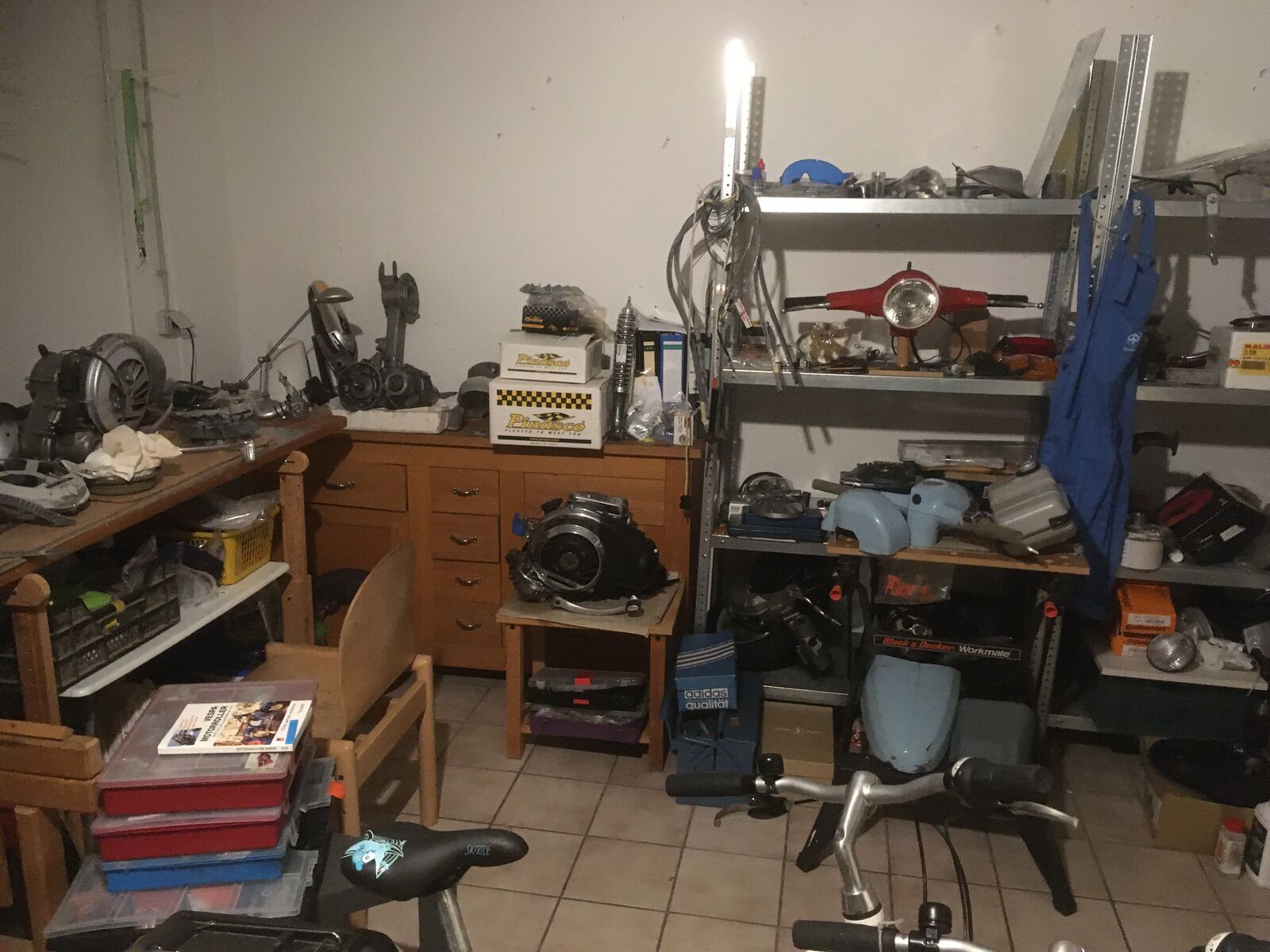 Und weil unten der Platz nicht mehr reicht wurde die PX,PK,Schwalbe nach oben auf den Dachboden gestellt mit nen Gabelstapler