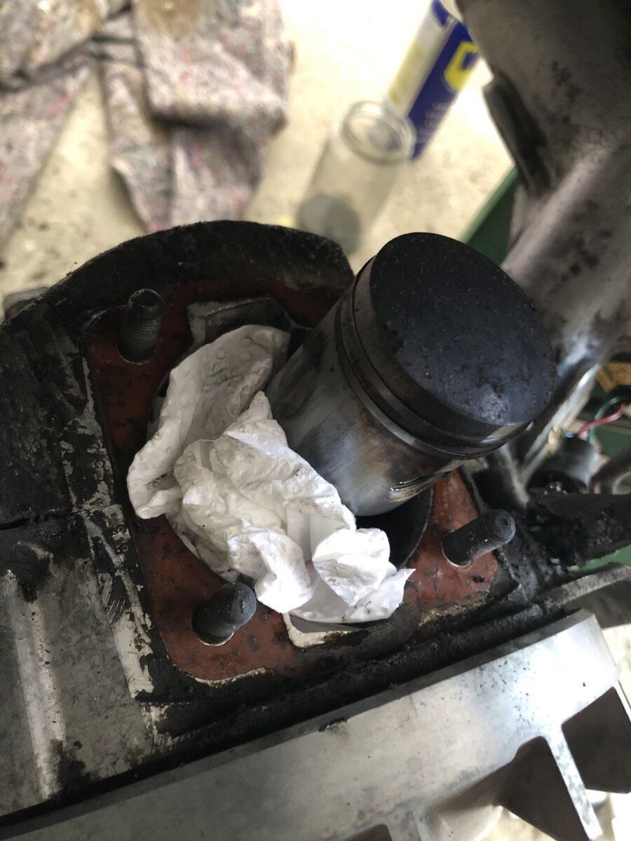 Heute habe ich also den kompletten Motor abgelassen und den groben Schmutz weggeputzt und mir mal auch den Zylinder angeschaut.