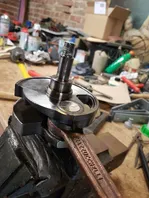 Hier ein paar Bilder von der KuWe. Man kann das Pleuel sehr stark nach oben und unten wackeln. Ich habe keine Ahnung, wie sowas eigentlich auf dem Hubzapfen(?) gelagert ist, aber so viel Spiel haben die Dinger bei mir noch nie gehabt...