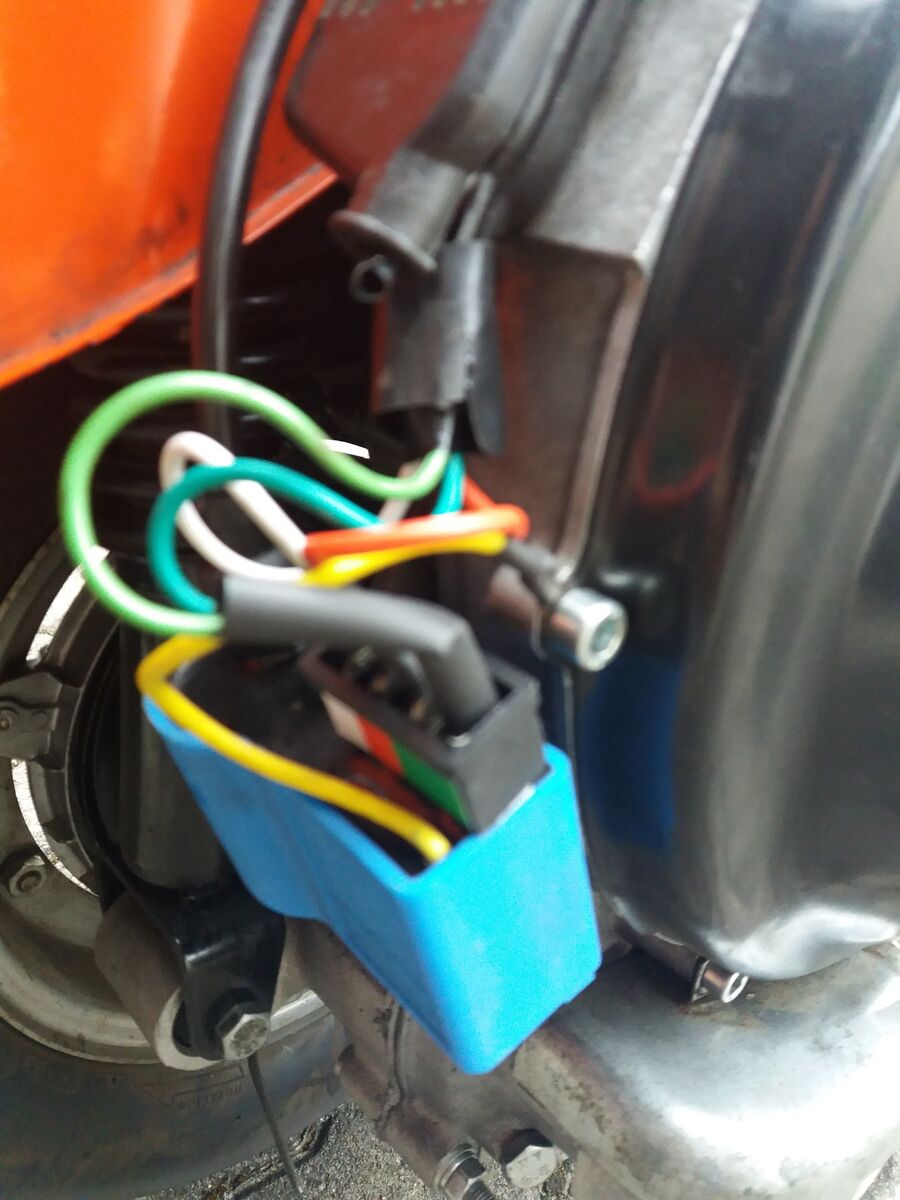 Die orginale Kabelei vom Roller ist schwarz rot gelb lila und grün.