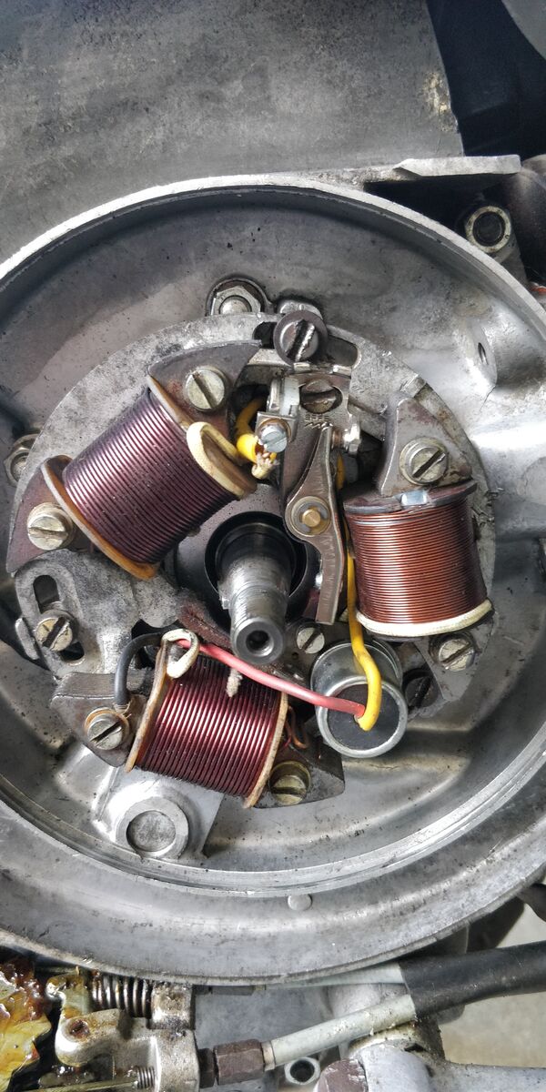 Welche Kabelfarben kommen am Kästchen an ? Trenne mal die Verbindung im Kasten zum restlichen Kabelbaum. Bei einer 6 Volt V50 kann man das schwarze und das blaue Kabel verbinden, damit der Motor läuft. Wie das bei dir ist, weiss ich nicht, kannst du ja aber mal testen, indem du die Kerze ausbaust und guckst, wann ein Zündfunke da ist.