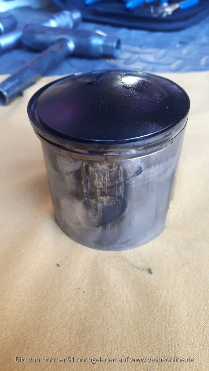 Umbau ging reibungslos. Zylinder mit der Schlüsselfeile entgratet. Einbauspiel 0,2 mm gemessen. Alles mit Drehmomentschlüssel angezogen. Bedüsung angepasst (HD 160, BE3, 104, ND 52/140). Noch 100 ml Öl zusätzlich in den randvollen Tank. Nur 100 ml, weil Vespa ja eigentlich getrennt schmiert. Karre springt auch sofort an. Nach nicht mal einem Kilometer aber dann der Klemmer.