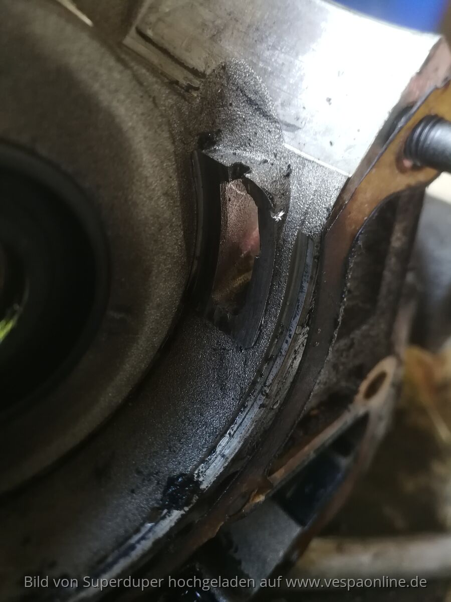 Somit kann der Drehschieber seiner Funktion nicht mehr richtig nachkommen und Abdichten. Der Spalt zur Kurbelwelle sollte durchgängig dafür 0,15 mm sein. Durch die Riefe oder Welle ist die Durchgängigkeit dahin.