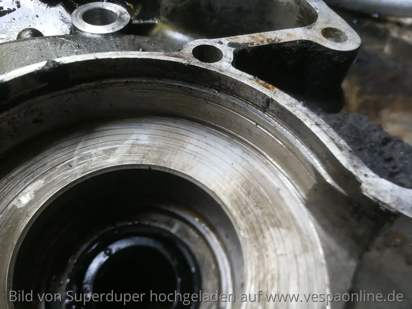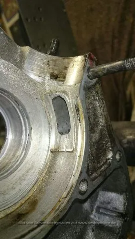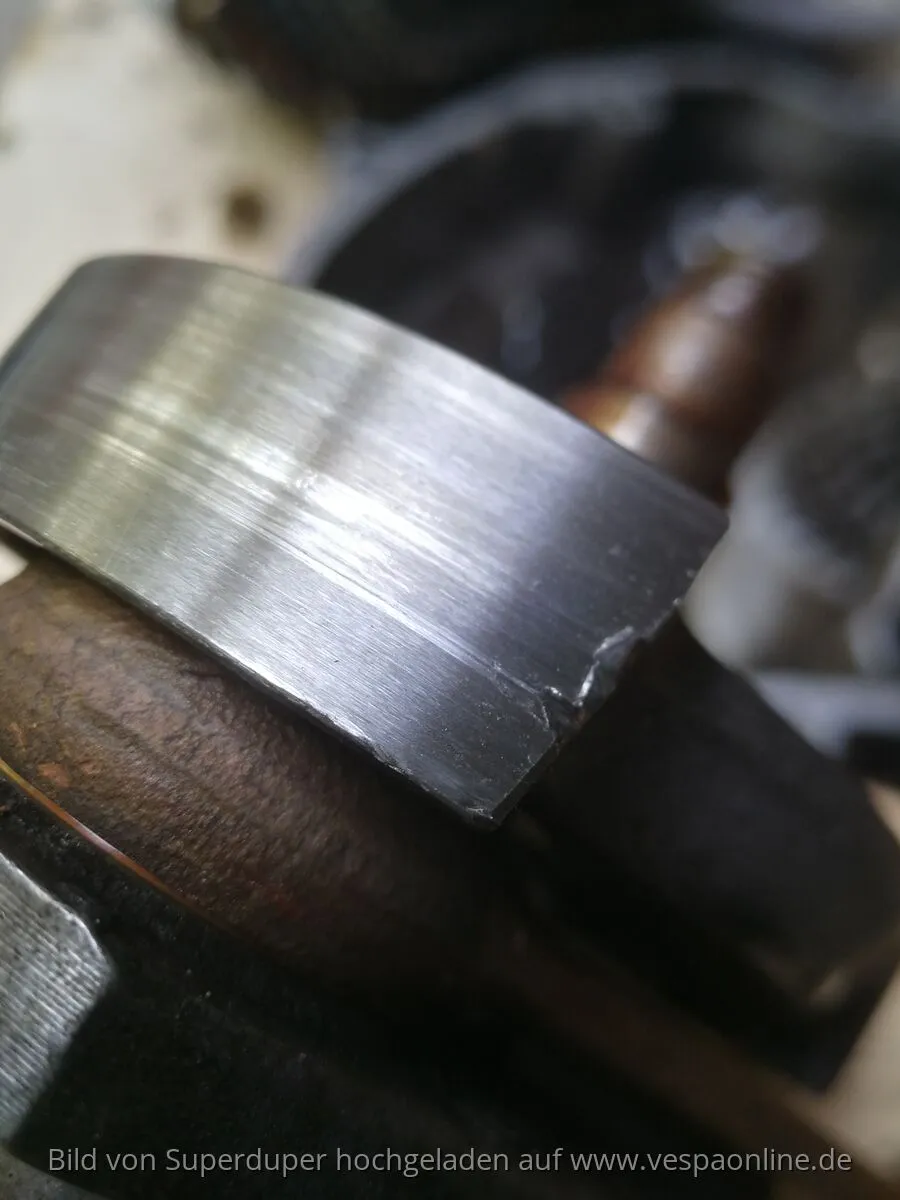 Somit kann der Drehschieber seiner Funktion nicht mehr richtig nachkommen und Abdichten. Der Spalt zur Kurbelwelle sollte durchgängig dafür 0,15 mm sein. Durch die Riefe oder Welle ist die Durchgängigkeit dahin.