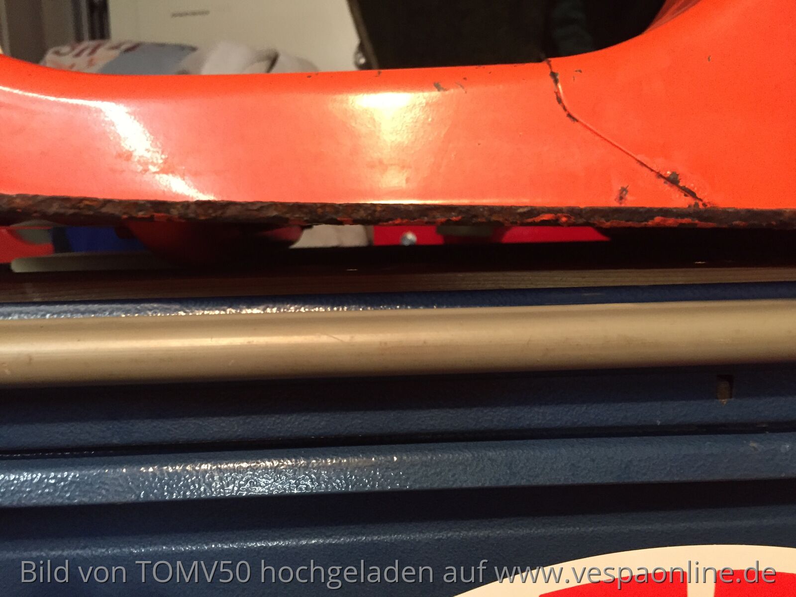 Dachte, ich entferne den gröbsten Rost mit einer Messingbürste, polier den ganzen Rahmen mit Rot-Weiß silikonfrei und reibe den kompletten Rahmen dünn mit Oxyblock ein.