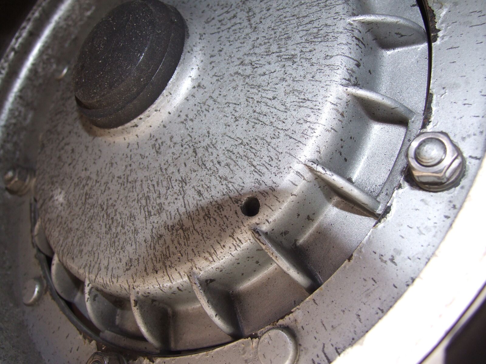 Kupplungsdeckel runter, dabei fiel mir schon auf das, die Getriebeentlüftung ein bisschen schwärzer war, als normal. Kupplungsdichtung sah auch gut aus, trotzdem gewechselt.