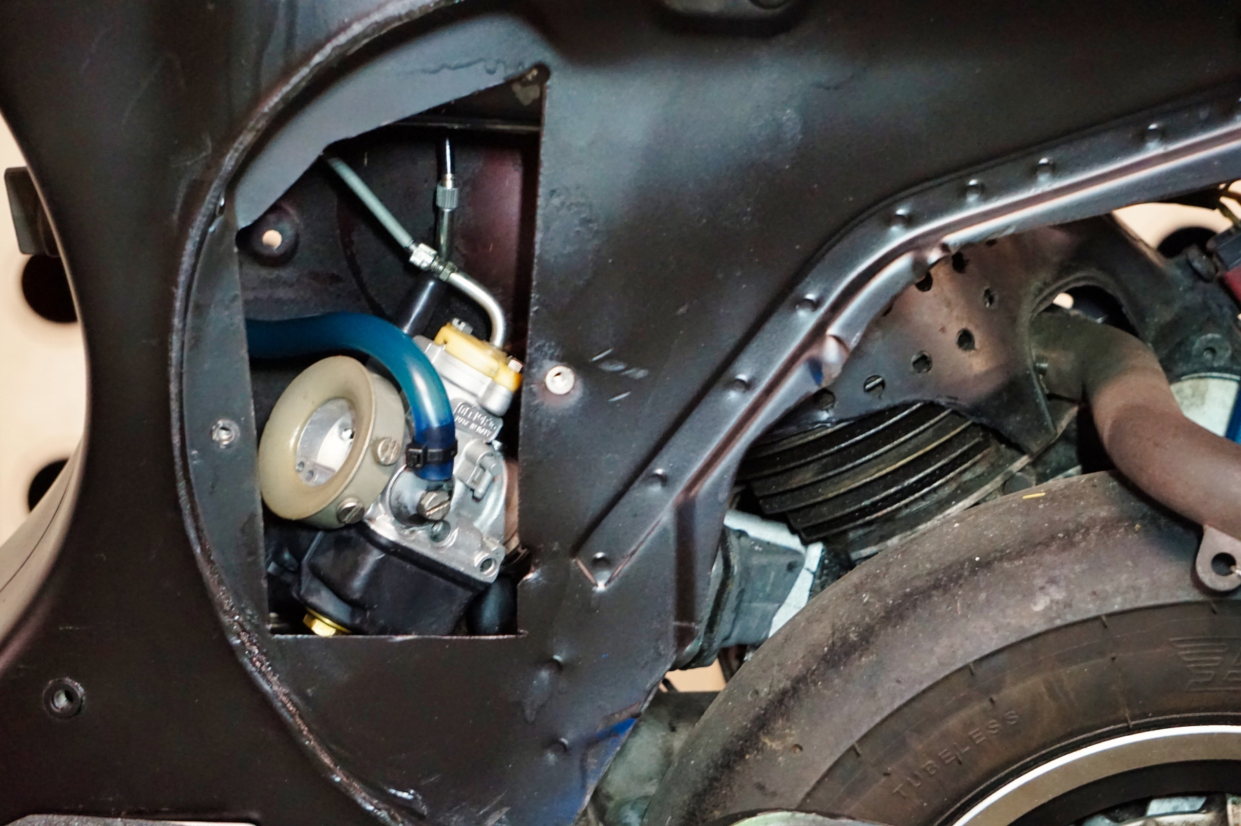 - ich war so frei eine "Wartungklappe" rein zu flexen. Vergaser abdüsen könnte endlich Spaß machen.