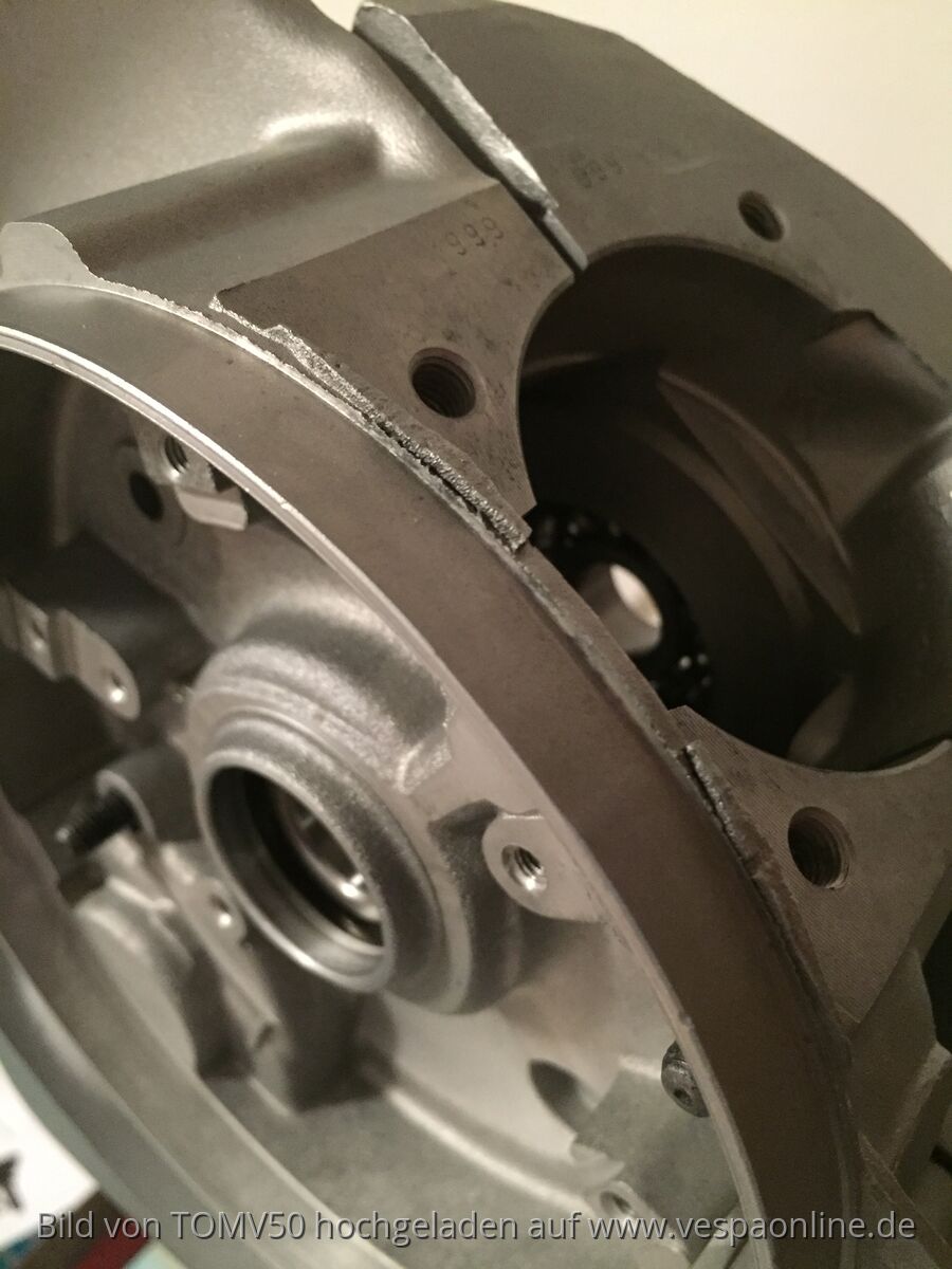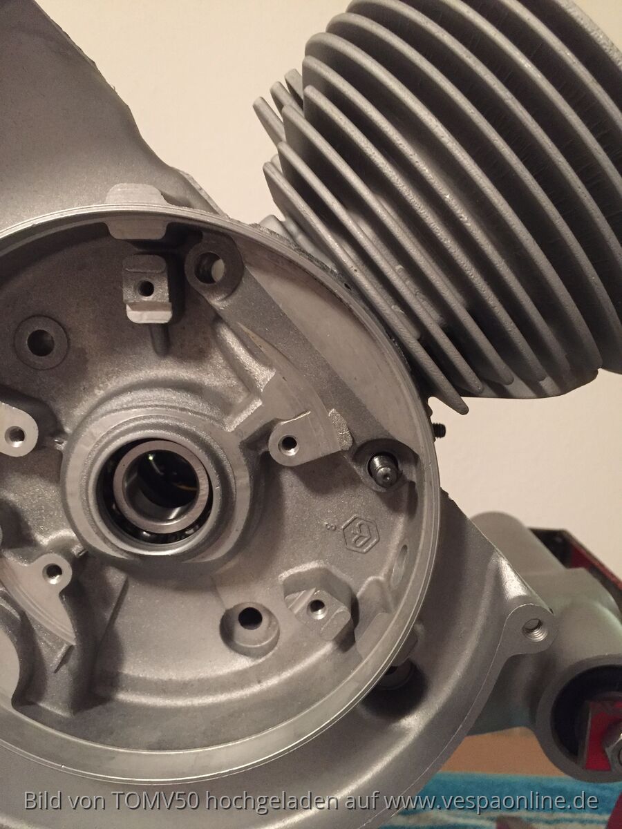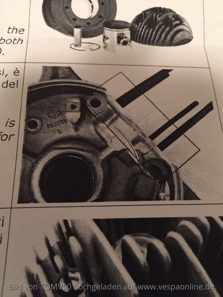 Zylinder geht nicht ganz auf die Dichtfläche, stößt mit einer Kühlrippe am Gehäusekranz, in dem das Polrad läuft; gehört lt beiliegender Beschreibung abgefräst, soweit klar;