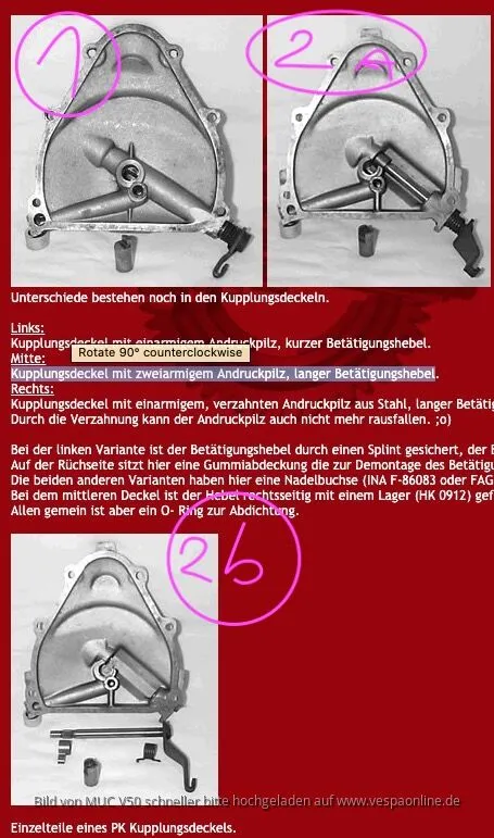 - no 2a oder 2b als auch einen, der mich sehr an meinen alten PK125S Deckel erinnert aber wohl auch in anderen smallframes verbaut war... (Kupplungsdeckel mit zweiarmigem Andruckpilz, langer Betätigungshebel aber KEINEN verzahnten Andruckpilz, leider..)