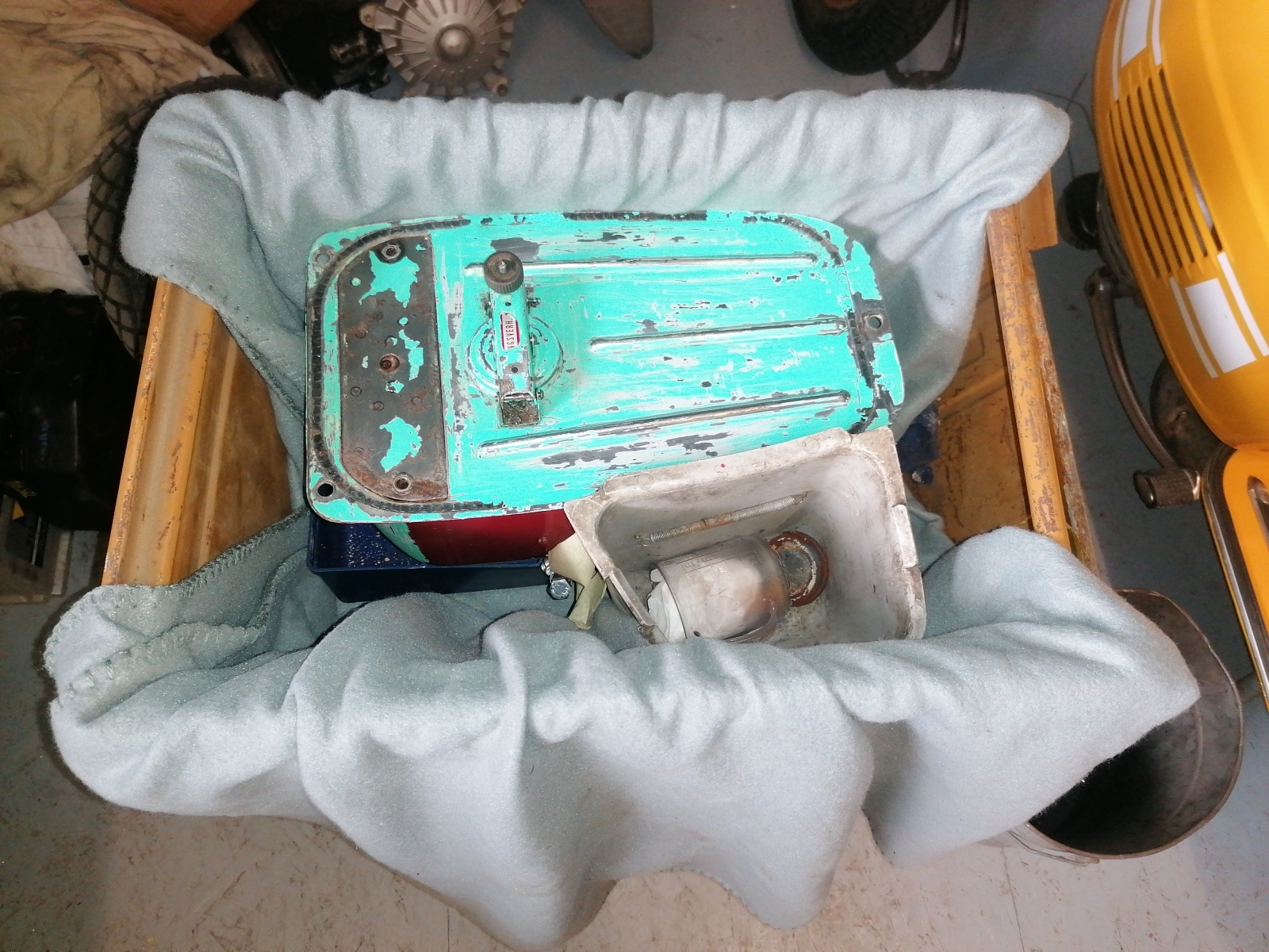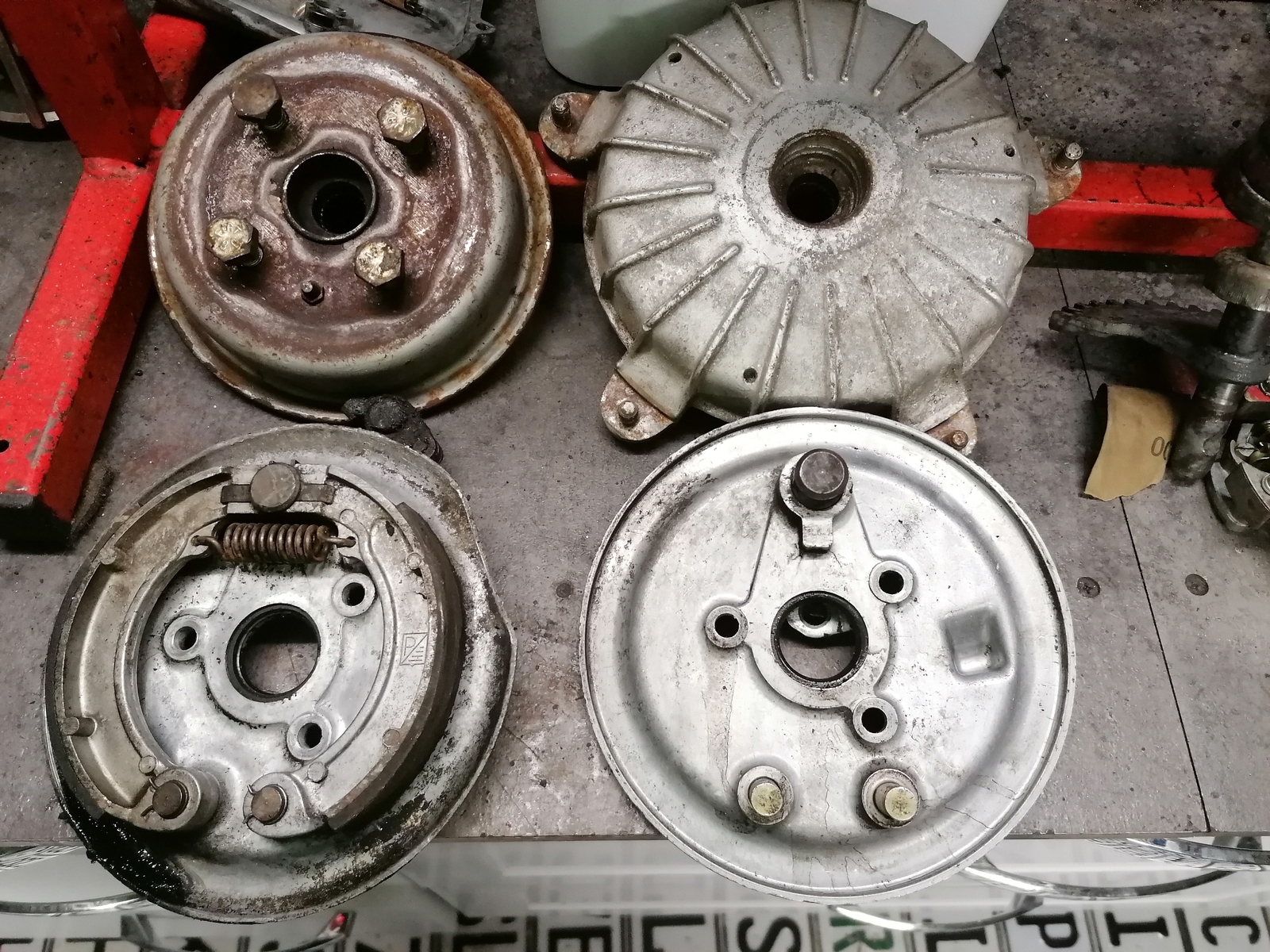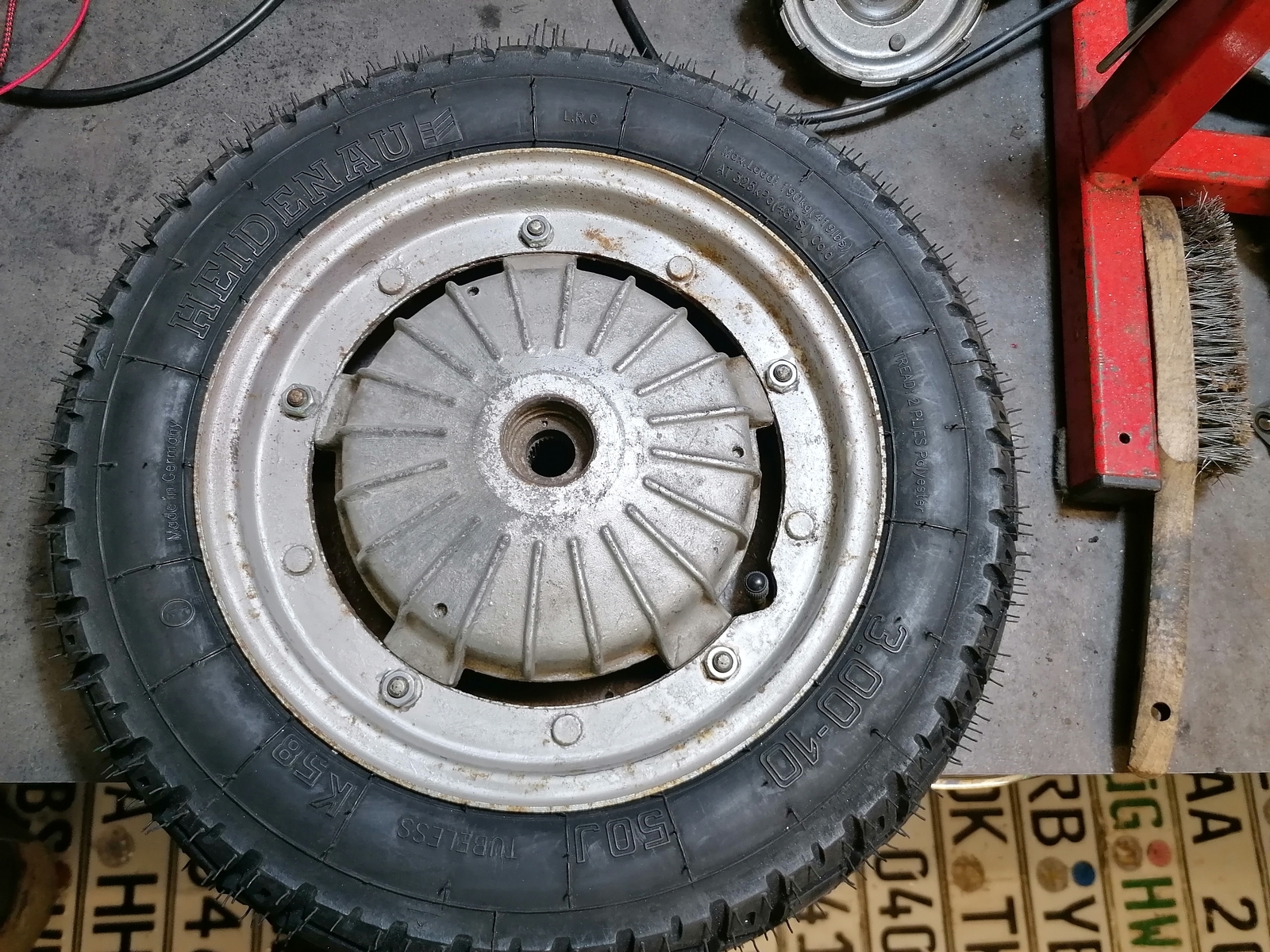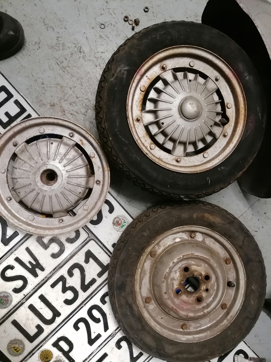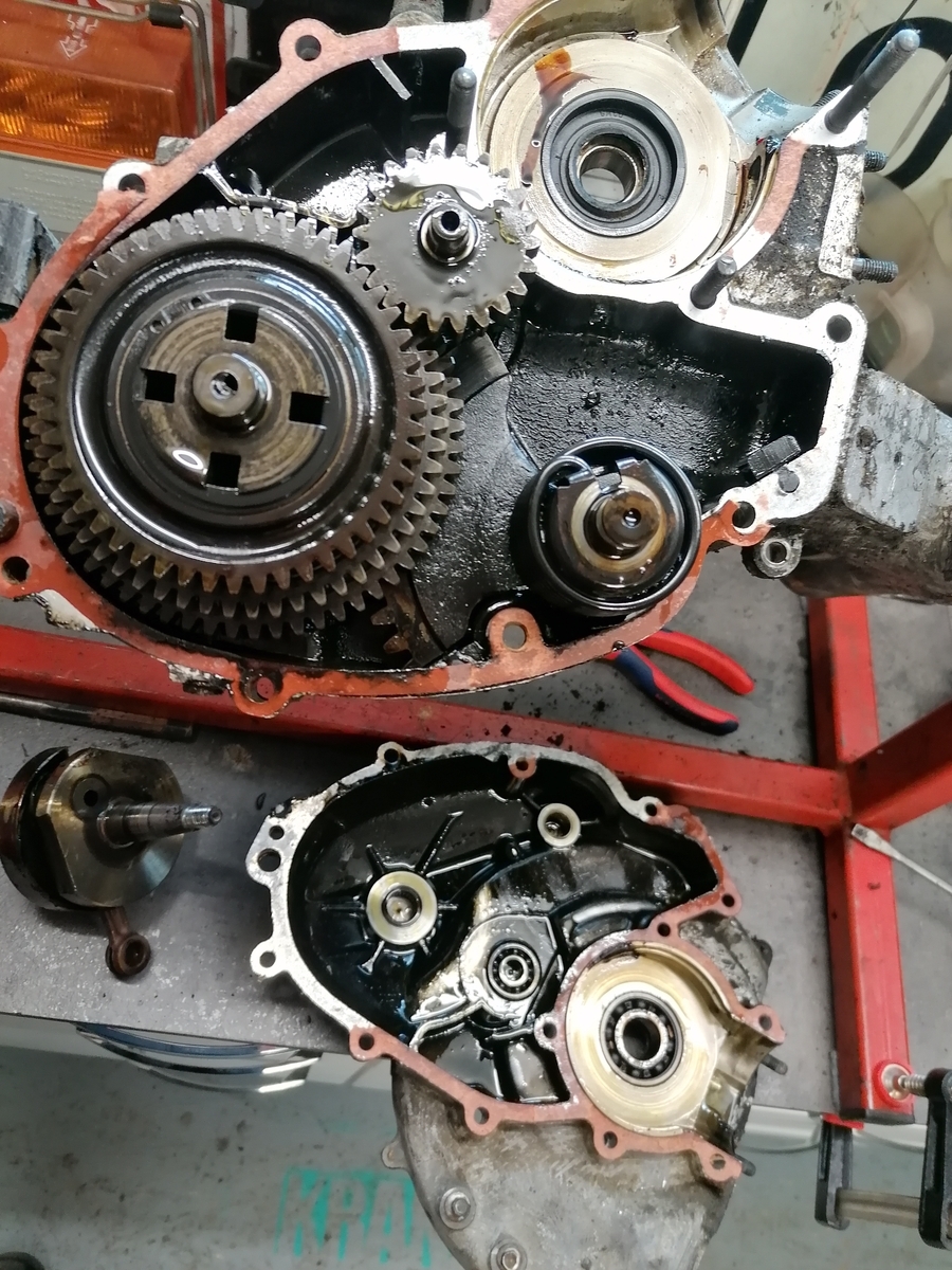 Die hintere Felge war eine geschlossene. Vorne ne offene. Motor ist wohl nicht der originale. Verzahnung war komplett im Arsch und die Achswelle abgerissen. Welle habe ich schon alles neu gebraucht liegen.