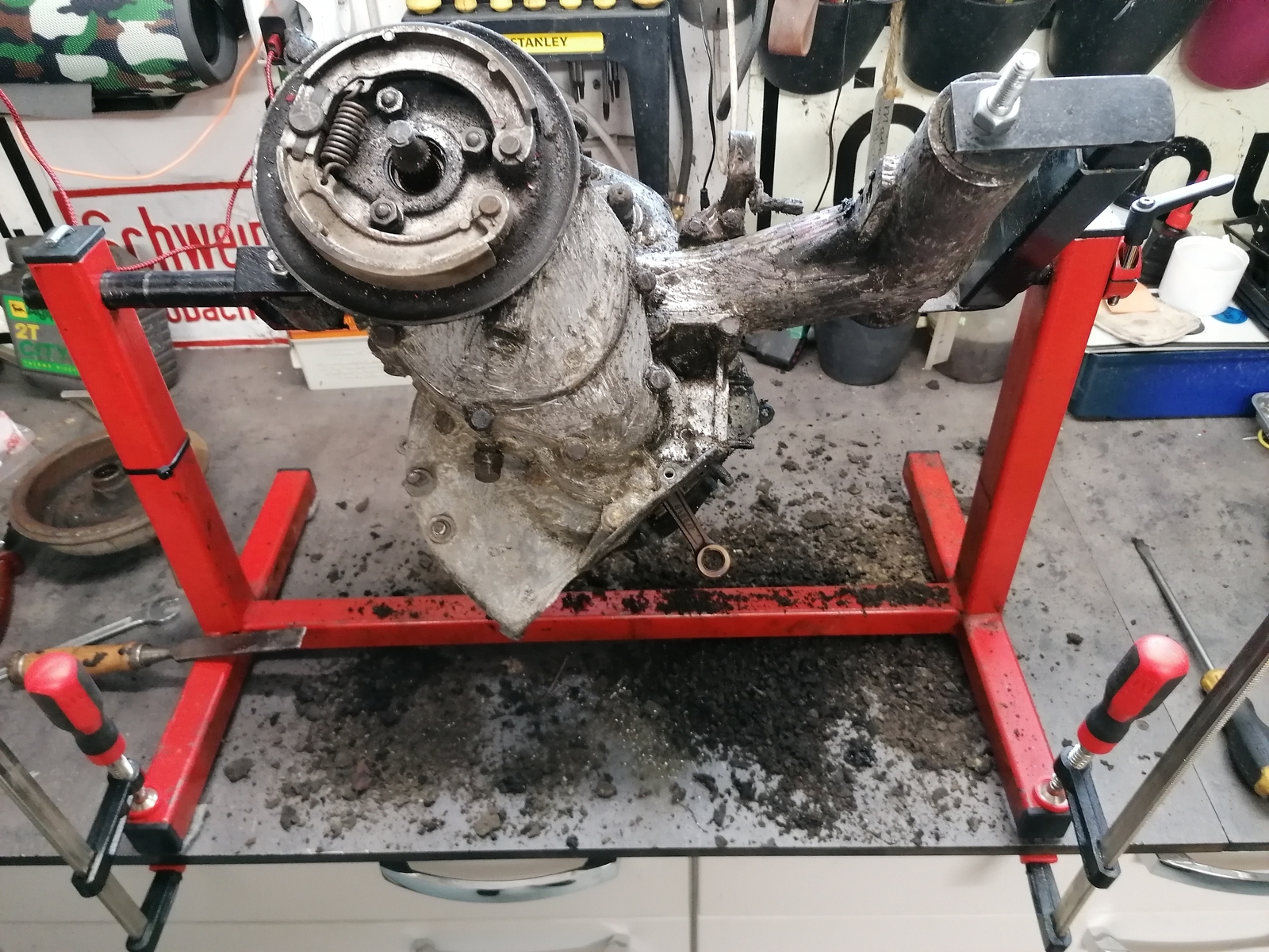Hier geht's auch mal weiter. Habe die Special erstmal auf Halde gestellt weil sie mir auf den Sack geht. So kann ich mich jetzt der Rundlicht widmen. Erstmal den Motor grob vom Dreck befreien und dann zerlegen. Wenn die zig Kilo schmodder runter sind...