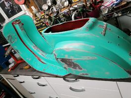 Jetzt noch den Tunnel und Beinschild von außen und den Kotflügel. Dann isse wieder hübsch. Ca 30-35 Std habe ich bis jetzt gebraucht. Mehrfaches Stecheisen schärfen,6 Kakaos,ca. 1.75L Aceton,ca. 2 qm Lappen,ca. 3 L Kola, eine kleine Tüte Twix,nen Döner und sehr viele nicht jugendfreie Flüche.