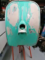 Jetzt nur noch das Beinschild von außen und den Kotflügel und Tank. Dann ist alles entlackt