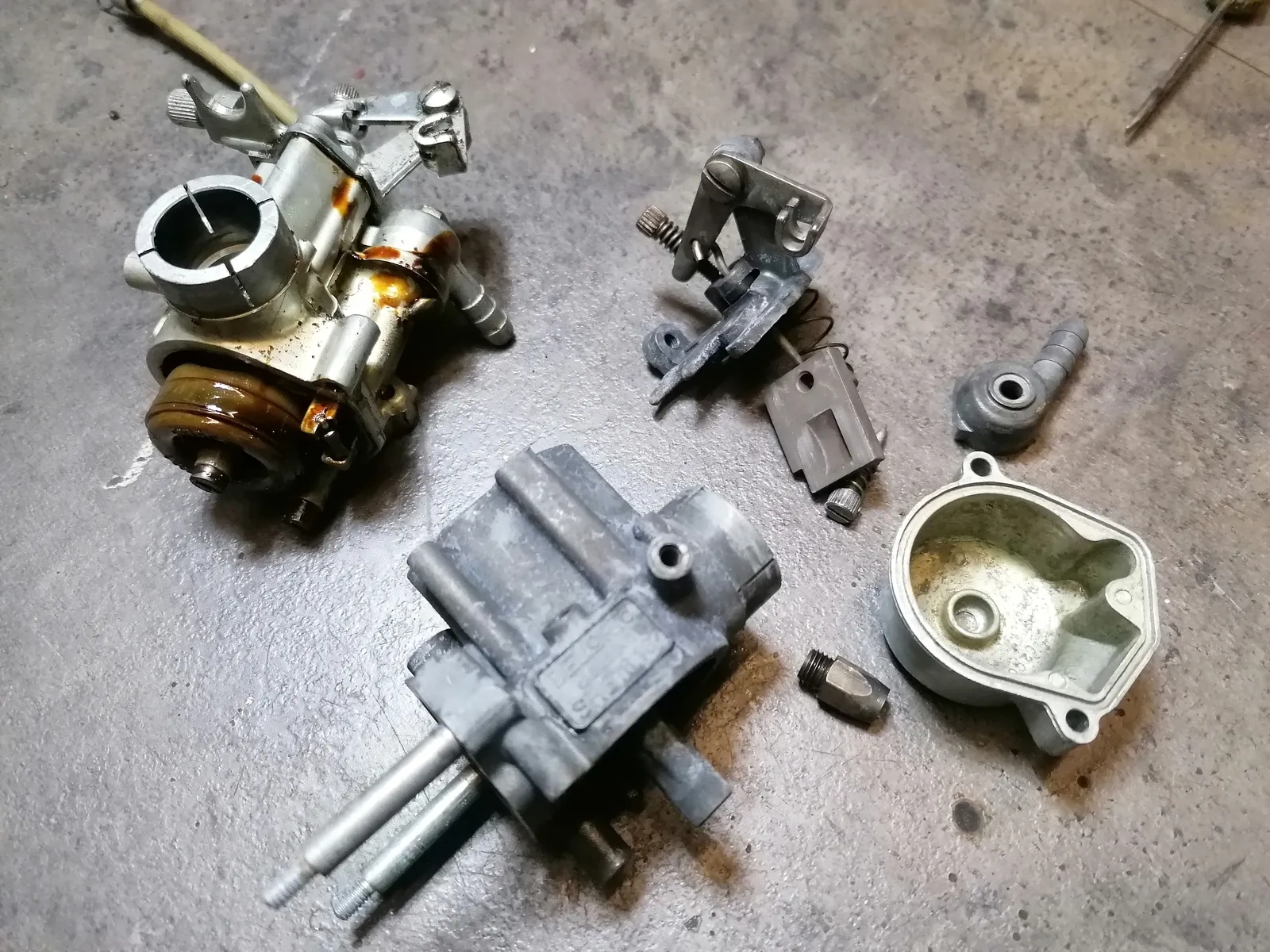 Habe heute mal den 16/16 Gaser ins Ultraschallbad gelegt. Habe leider kein vorher Bild gemacht. Aber so sieht er schon erheblich besser aus. Die Schwimmerkammer ist vom alten 16/10er Gaser den ich zum Vergleich mal da daneben gelegt habe.