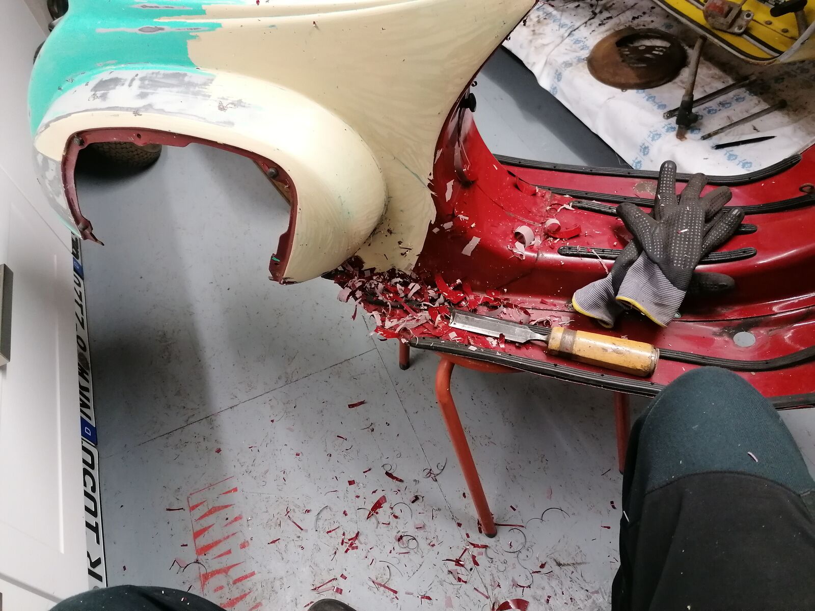 Wenn der Lack runter ist wird er bei eBay angeboten. Als Bausatzlackierung Vespa 50N lmao