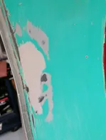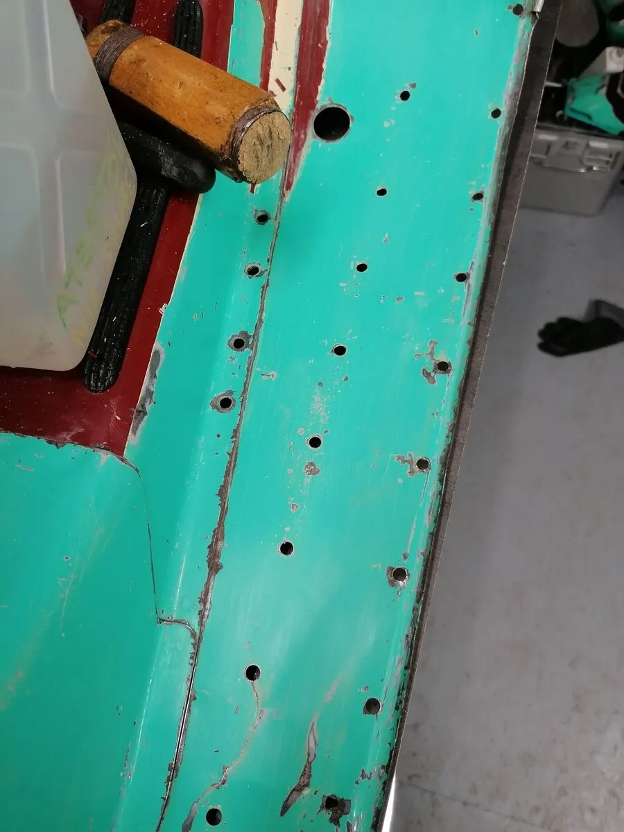 Linke Seite ist nun auch frei. 2 Stellen wurden gespachtelt. Kleine Dellen sind da drin. Ein paar Macken habe ich mit rein gekloppt. Egal....