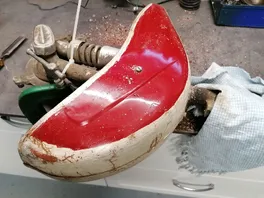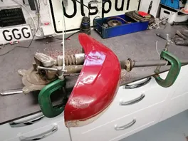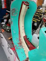 Jetzt nur noch das Beinschild von außen und den Kotflügel und Tank. Dann ist alles entlackt